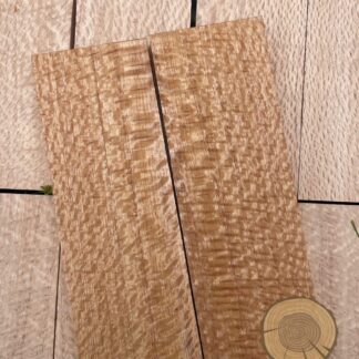 Cachas de grevílea (Grevillea robusta), una madera exótica y llamativa ideal para cuchillos únicos. Originaria de Australia y cultivada también en Sudamérica, la grevílea posee una densidad media de alrededor de 640 kg/m³. Su veta ondulada y contrastes dorados y cobrizos la hacen visualmente impactante, mientras que su buena trabajabilidad y estabilidad dimensional la convierten en una excelente opción tanto para cuchilleros principiantes como experimentados.
