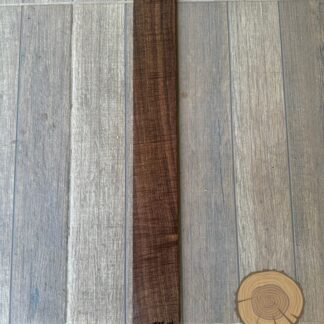 Diapasones de algarrobo flameado (Prosopis spp.) para guitarra. Originarios de Sudamérica, con densidad media-alta (aprox. 850–1.050 kg/m³), ofrecen gran estabilidad, tacto suave, buena resonancia y una veta decorativa flameada ideal para instrumentos únicos.