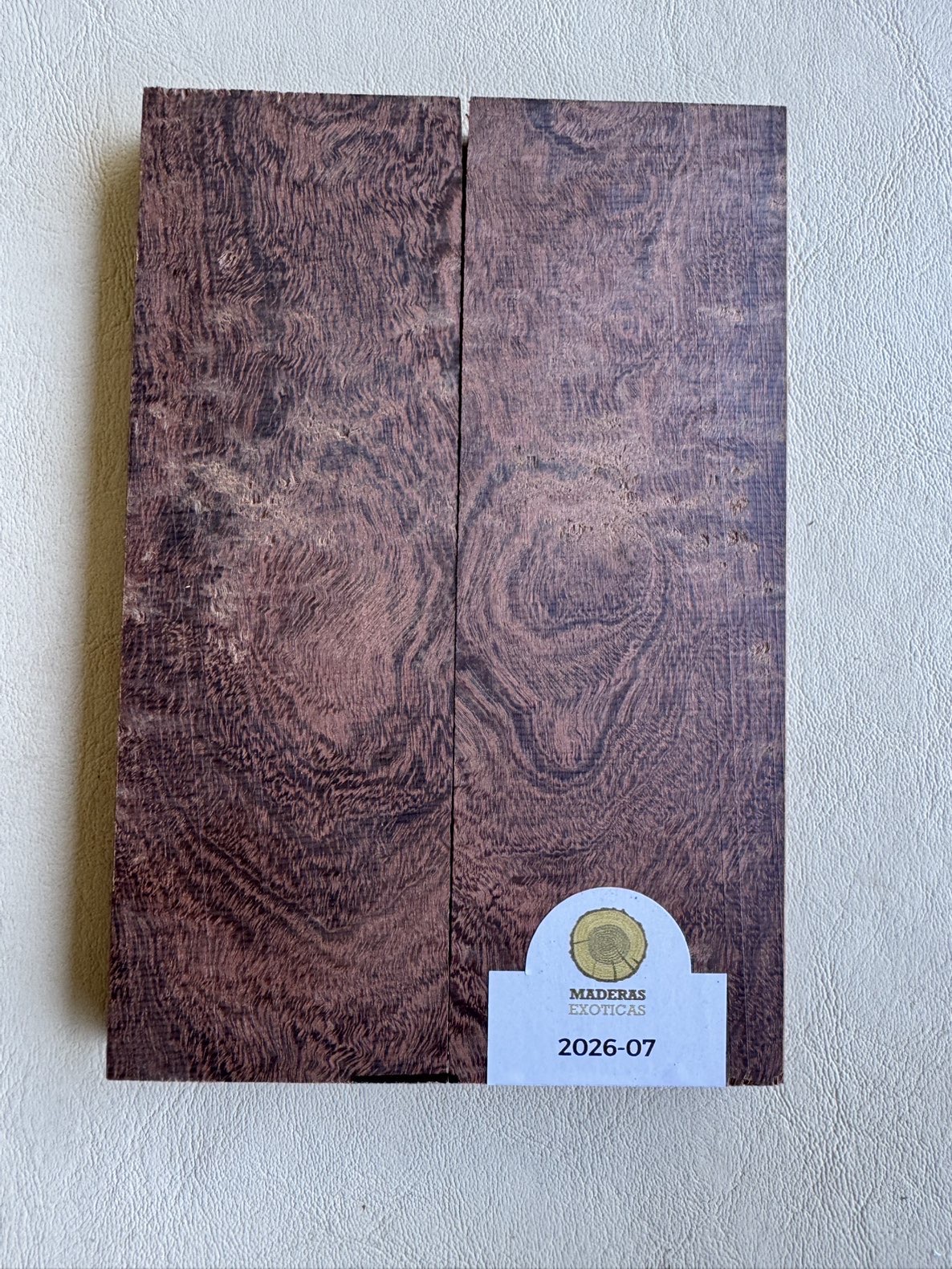 Descubrí nuestras exclusivas cachas de guayacán (Caesalpinia paraguariensis), una de las maderas más duras y resistentes de Sudamérica. Proveniente de bosques nativos del norte argentino, el guayacán se destaca por su altísima densidad (aproximadamente 1.200 kg/m³), su excepcional durabilidad y un veteado profundo y elegante que realza cualquier pieza.