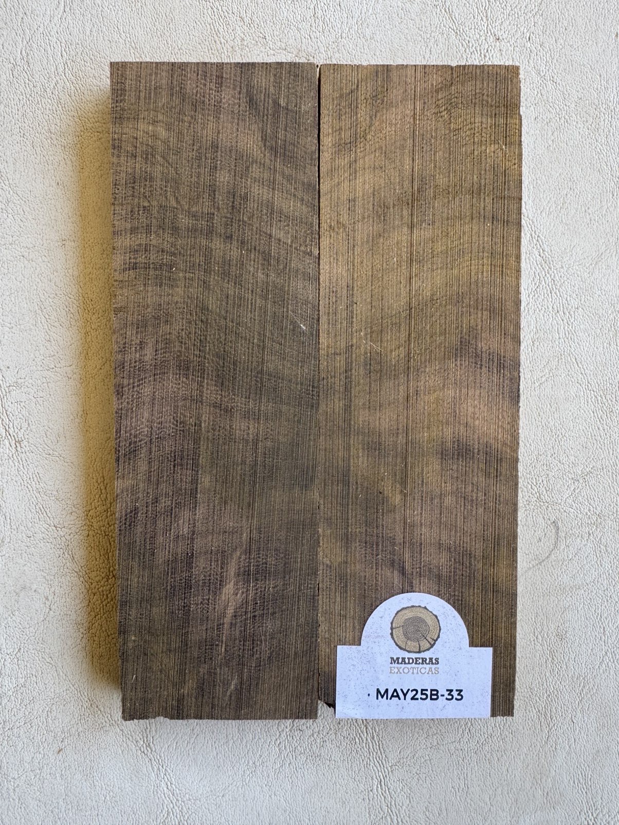 Cachas de lapacho (Handroanthus impetiginosus), madera densa y resistente de ± 960 kg/m³, originaria del norte argentino y Sudamérica. Excelente durabilidad, estabilidad dimensional y textura ideal para mangos robustos y de alta calidad.