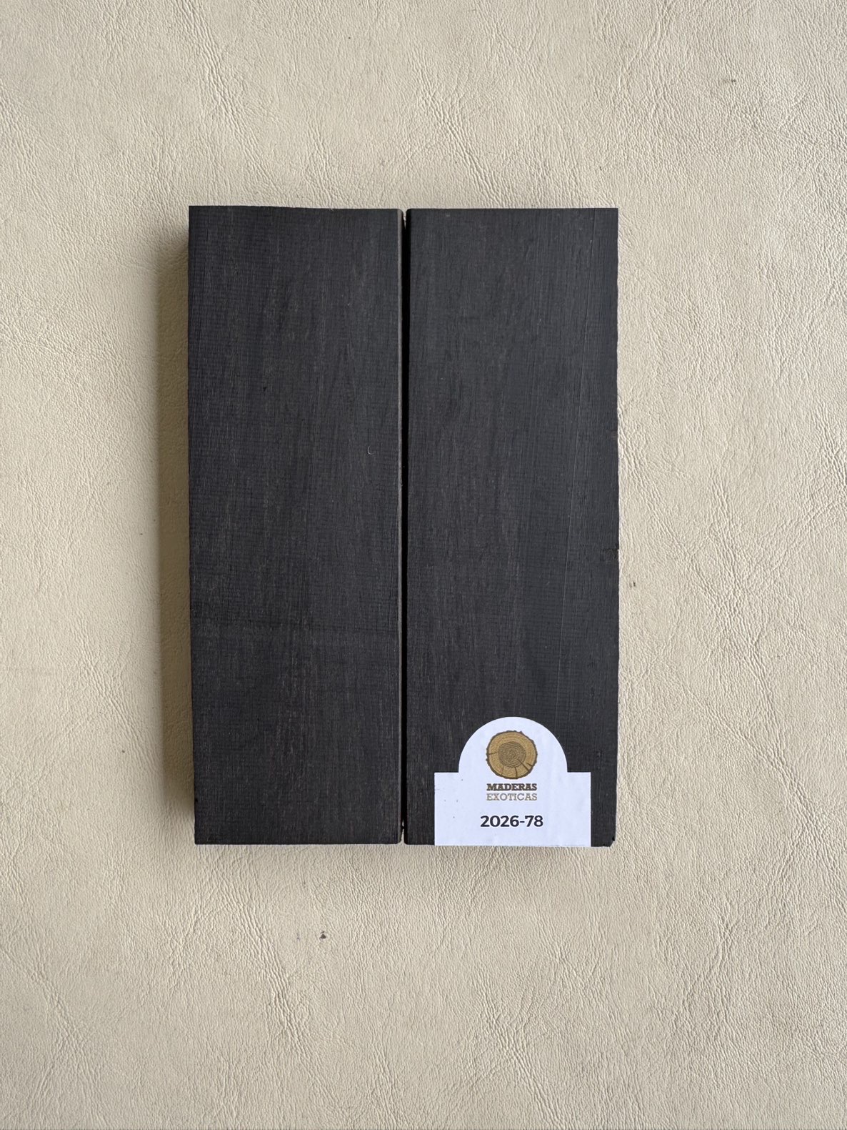 Cachas de ébano Gabón (Diospyros crassiflora), una de las maderas más exclusivas y deseadas del mundo para cuchillería de alta gama. Originaria del África ecuatorial, esta especie presenta una densidad excepcional, cercana a los 1000–1100 kg/m³, y una dureza extrema que garantiza durabilidad, resistencia al desgaste y un acabado perfectamente pulido. Su color negro profundo con vetas ocasionales la convierte en sinónimo de elegancia y distinción.