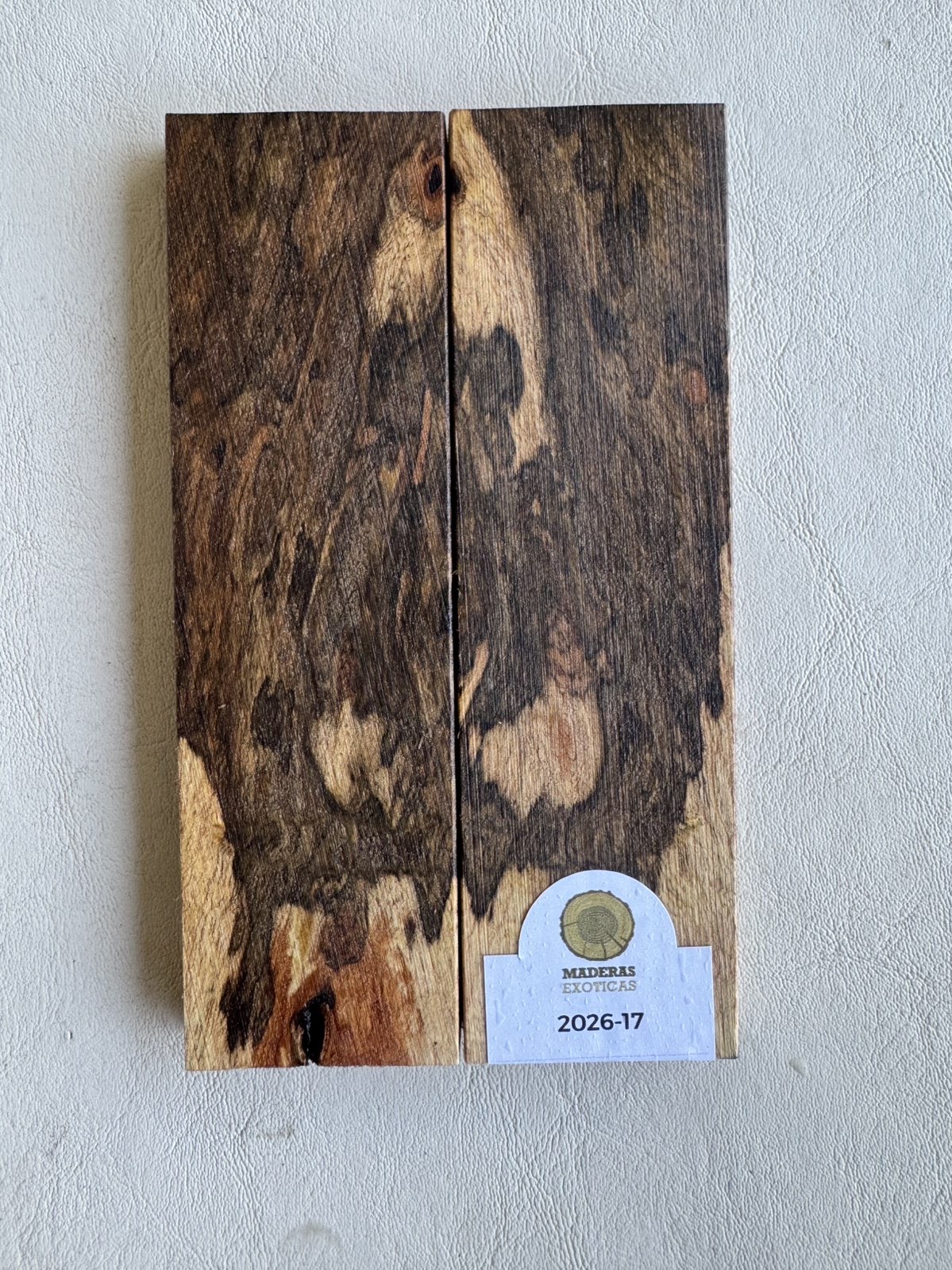 Cachas de Guayubira exótica (Patagonula americana) para cuchillos. Madera sudamericana de alta densidad (950 kg/m³), muy dura, estable y con vetas contrastadas únicas. Ideal para piezas elegantes, funcionales y de gran resistencia