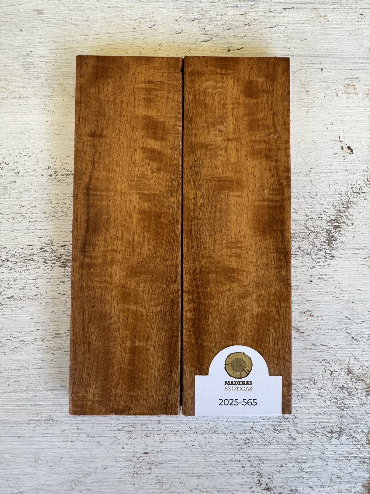 Cachas de incienso jaspeado (Myroxylon balsamum), una madera exótica de gran carácter y belleza natural, perfecta para cuchillería artesanal. Originaria de América Central y el norte de Sudamérica, esta especie presenta una densidad aproximada de 800 kg/m³. Se destaca por su veta intensa, con tonos cálidos y patrones jaspeados únicos, así como por su excelente durabilidad, resistencia al desgaste y facilidad de pulido.
