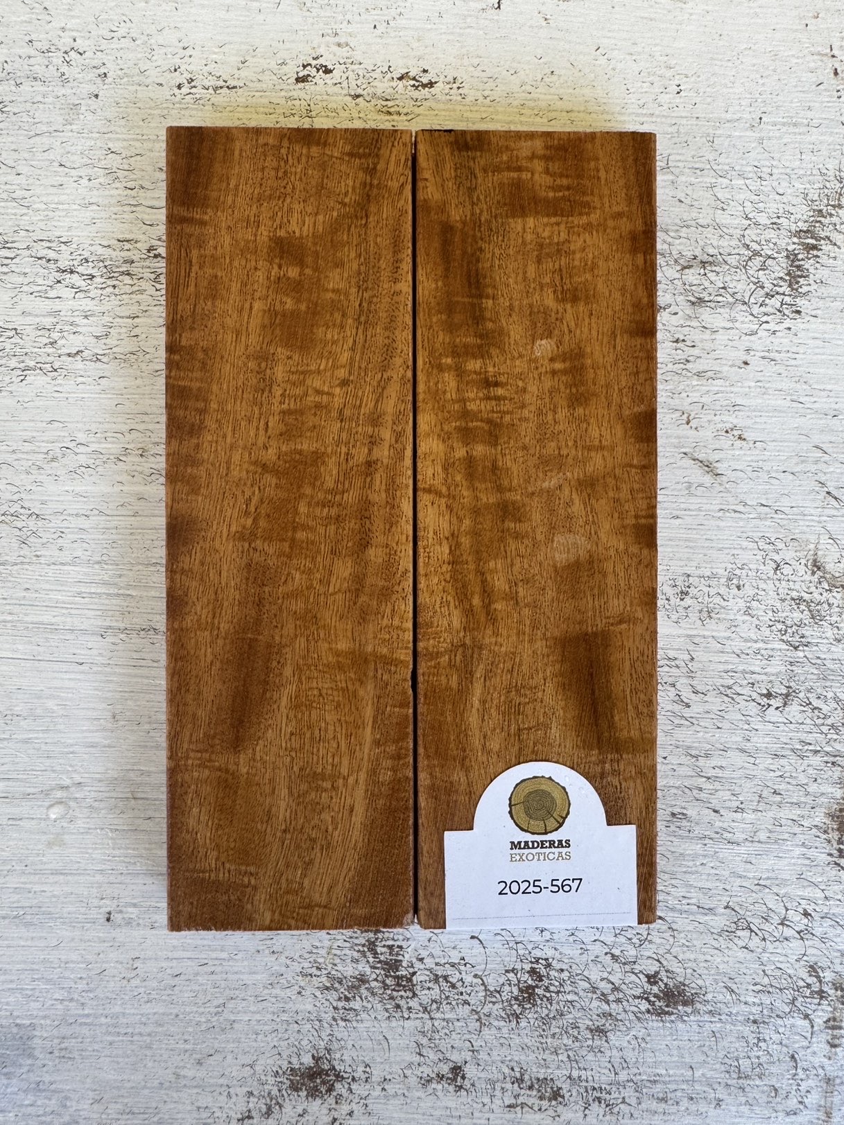 Cachas de incienso jaspeado (Myroxylon balsamum), una madera exótica de gran carácter y belleza natural, perfecta para cuchillería artesanal. Originaria de América Central y el norte de Sudamérica, esta especie presenta una densidad aproximada de 800 kg/m³. Se destaca por su veta intensa, con tonos cálidos y patrones jaspeados únicos, así como por su excelente durabilidad, resistencia al desgaste y facilidad de pulido.