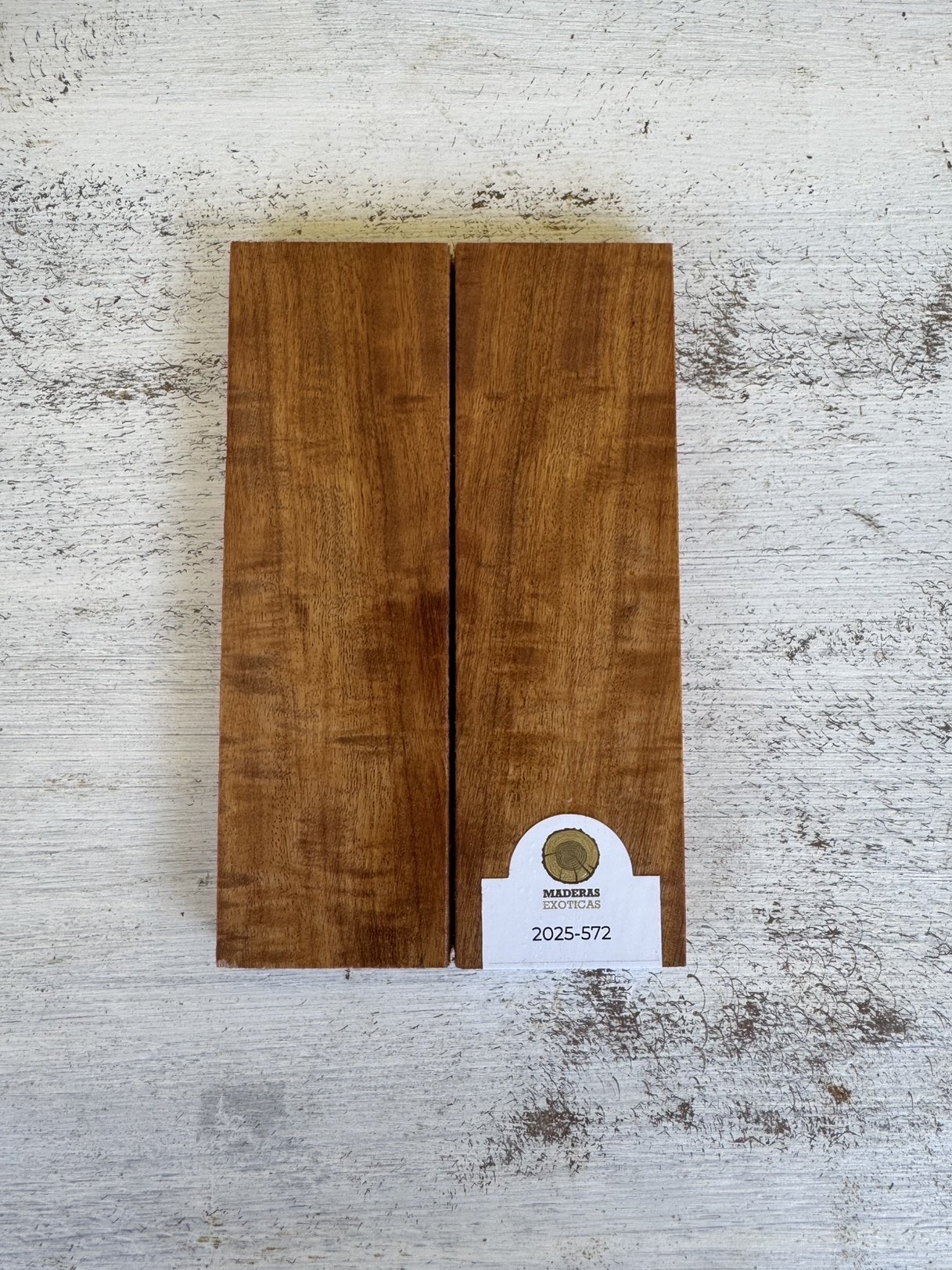 Cachas de incienso jaspeado (Myroxylon balsamum), una madera exótica de gran carácter y belleza natural, perfecta para cuchillería artesanal. Originaria de América Central y el norte de Sudamérica, esta especie presenta una densidad aproximada de 800 kg/m³. Se destaca por su veta intensa, con tonos cálidos y patrones jaspeados únicos, así como por su excelente durabilidad, resistencia al desgaste y facilidad de pulido.