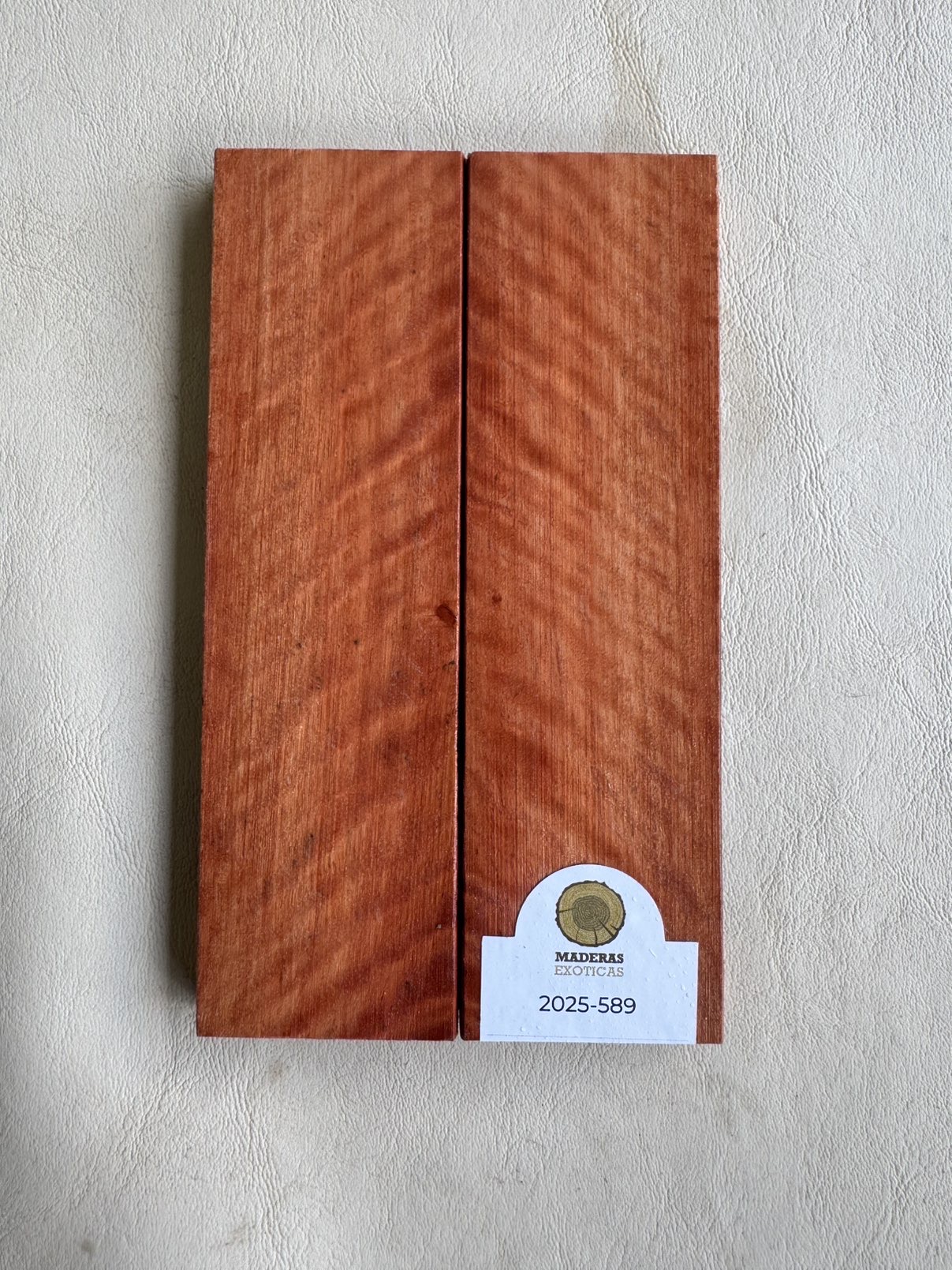 Las Cachas de Rostrata Flameada (Caesalpinia echinata) son maderas exóticas de Brasil reconocidas por su alta densidad (1040 kg/m³) y dureza superior, lo que garantiza mangos de cuchillo resistentes y estables. Su acabado flameado y vetas rojizas y marrones aportan un toque artesanal y sofisticado, perfecto para quienes buscan combinar funcionalidad y estética en cuchillos de alta gama.