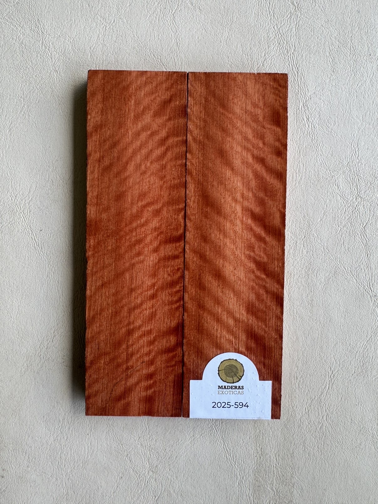 Las Cachas de Rostrata Flameada (Caesalpinia echinata) son maderas exóticas de Brasil reconocidas por su alta densidad (1040 kg/m³) y dureza superior, lo que garantiza mangos de cuchillo resistentes y estables. Su acabado flameado y vetas rojizas y marrones aportan un toque artesanal y sofisticado, perfecto para quienes buscan combinar funcionalidad y estética en cuchillos de alta gama.