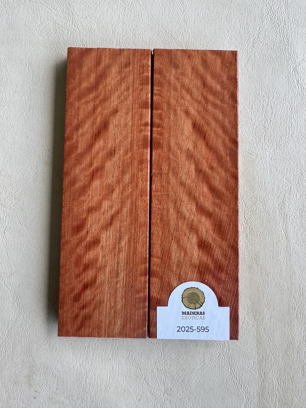 Las Cachas de Rostrata Flameada (Caesalpinia echinata) son maderas exóticas de Brasil reconocidas por su alta densidad (1040 kg/m³) y dureza superior, lo que garantiza mangos de cuchillo resistentes y estables. Su acabado flameado y vetas rojizas y marrones aportan un toque artesanal y sofisticado, perfecto para quienes buscan combinar funcionalidad y estética en cuchillos de alta gama.