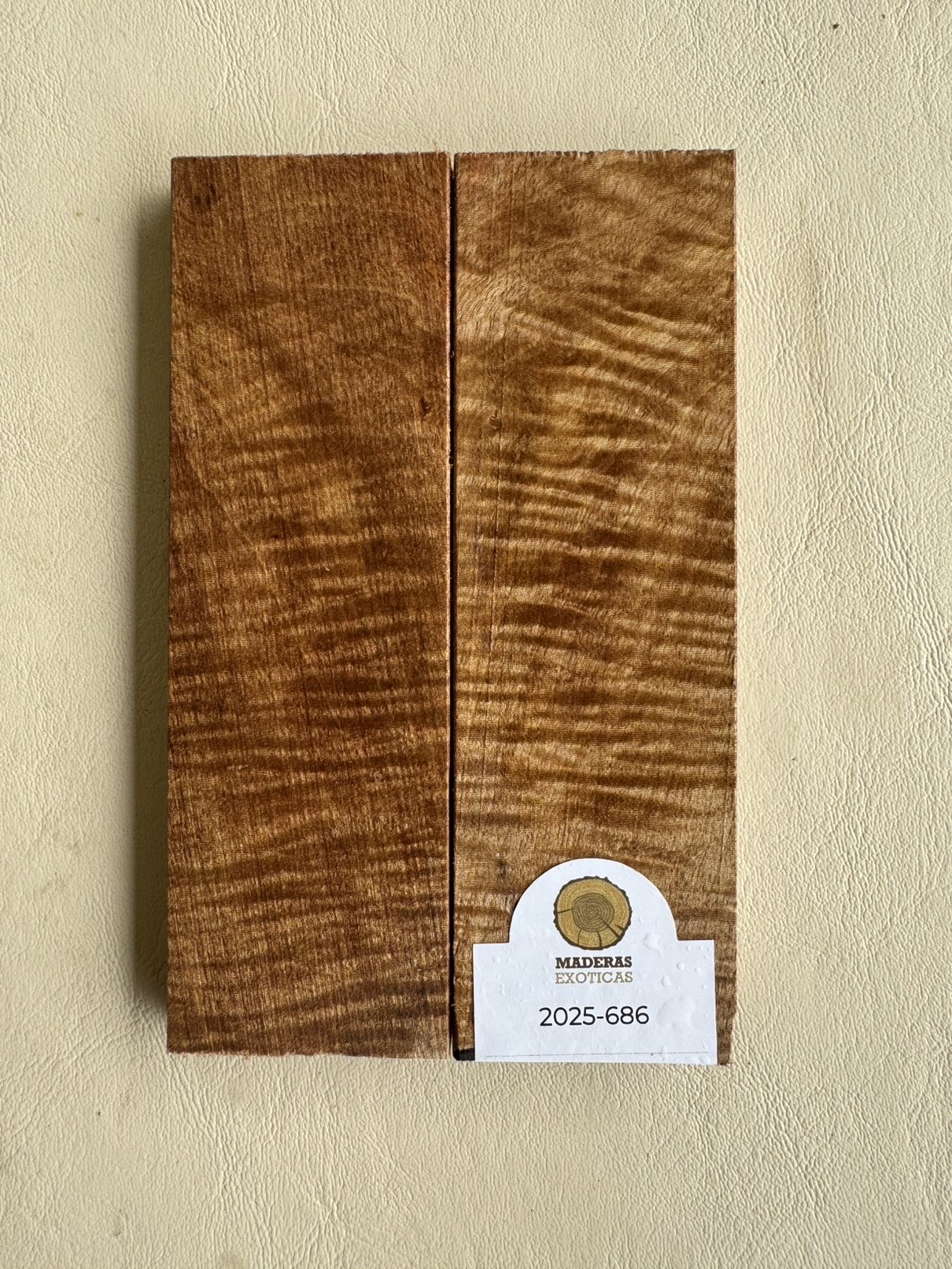 El rasgo más distintivo de estas piezas es su flameado natural, un dibujo de veta con movimiento que genera profundidad visual y reflejos únicos al aplicar acabado. Los colores suelen variar entre tonos marrón miel, dorado y matices más oscuros, intensificándose con aceites, ceras o barnices, lo que aporta una apariencia cálida y elegante.