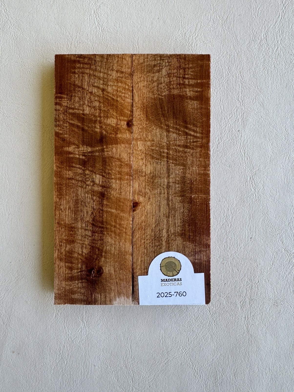 El rasgo más distintivo de estas piezas es su flameado natural, un dibujo de veta con movimiento que genera profundidad visual y reflejos únicos al aplicar acabado. Los colores suelen variar entre tonos marrón miel, dorado y matices más oscuros, intensificándose con aceites, ceras o barnices, lo que aporta una apariencia cálida y elegante.