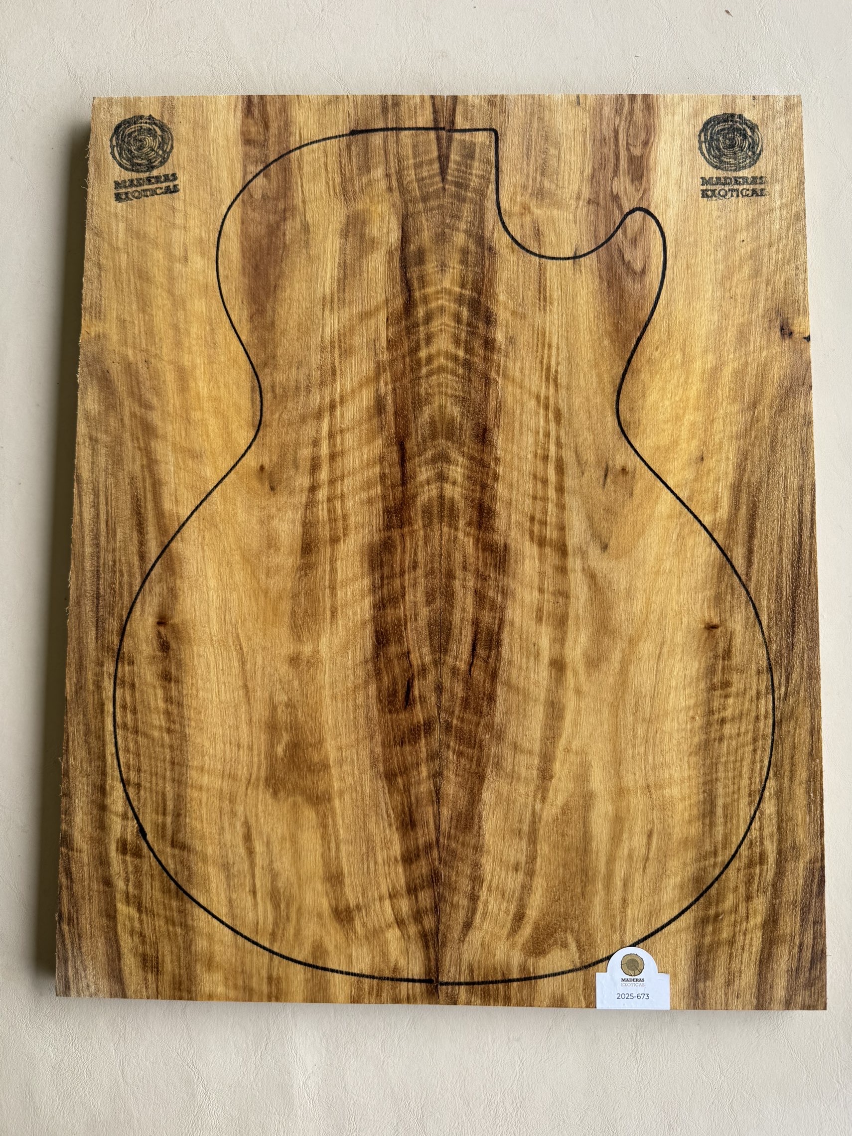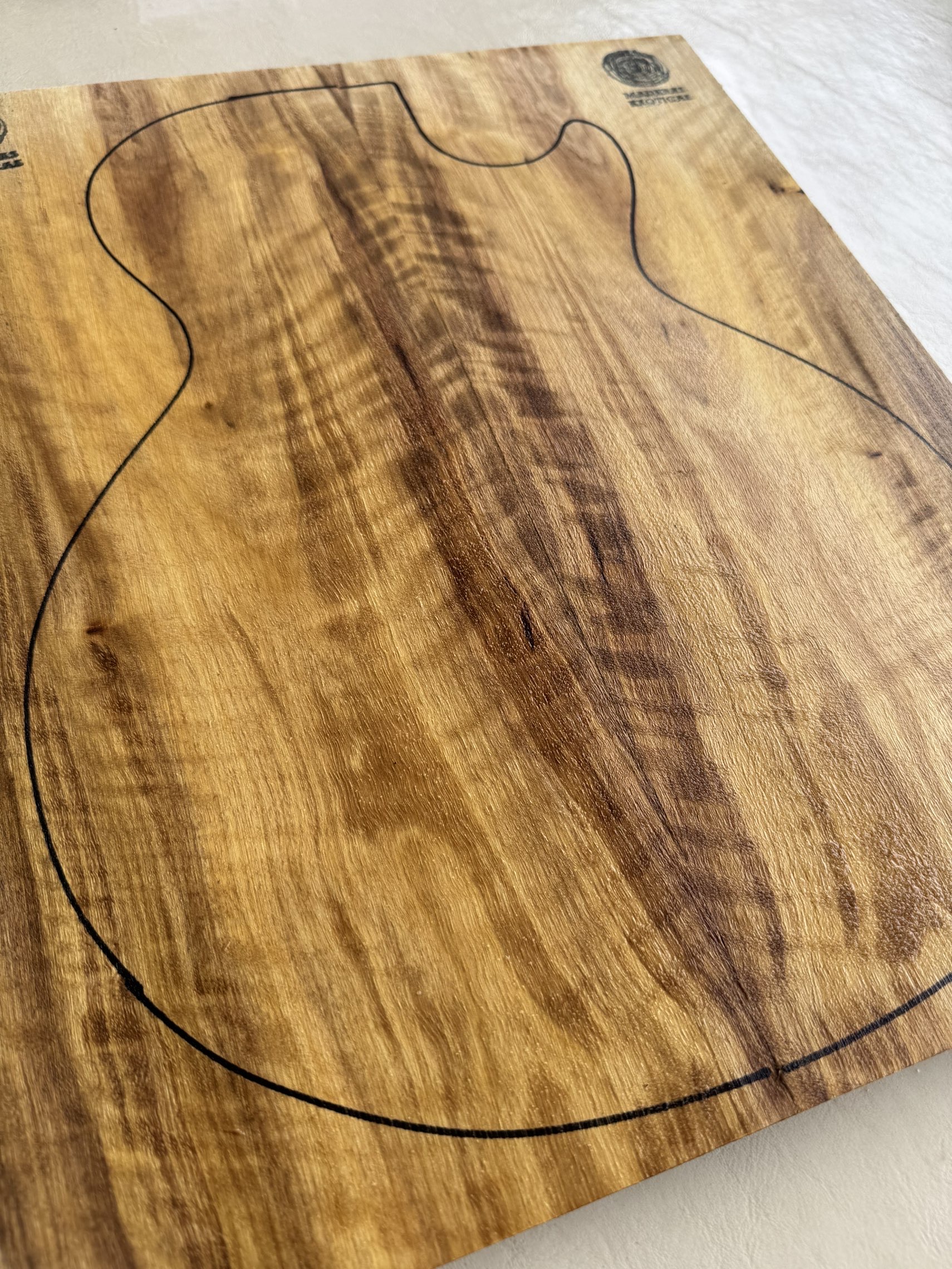 Carved top de Laurel flameado (Laurus nobilis), una madera exótica de origen latinoamericano con una estética única y un flameado natural impresionante.