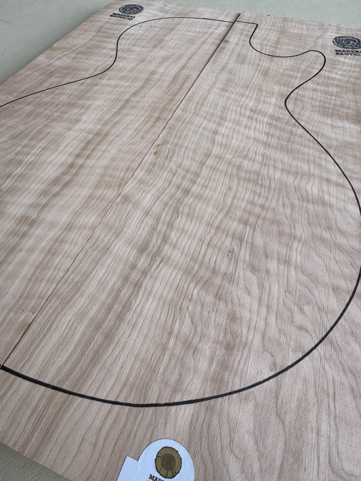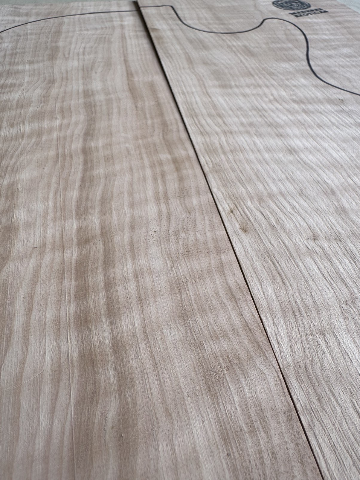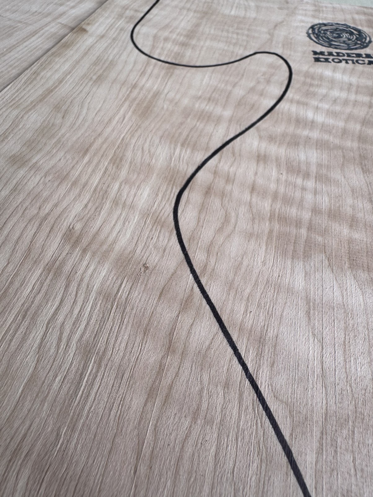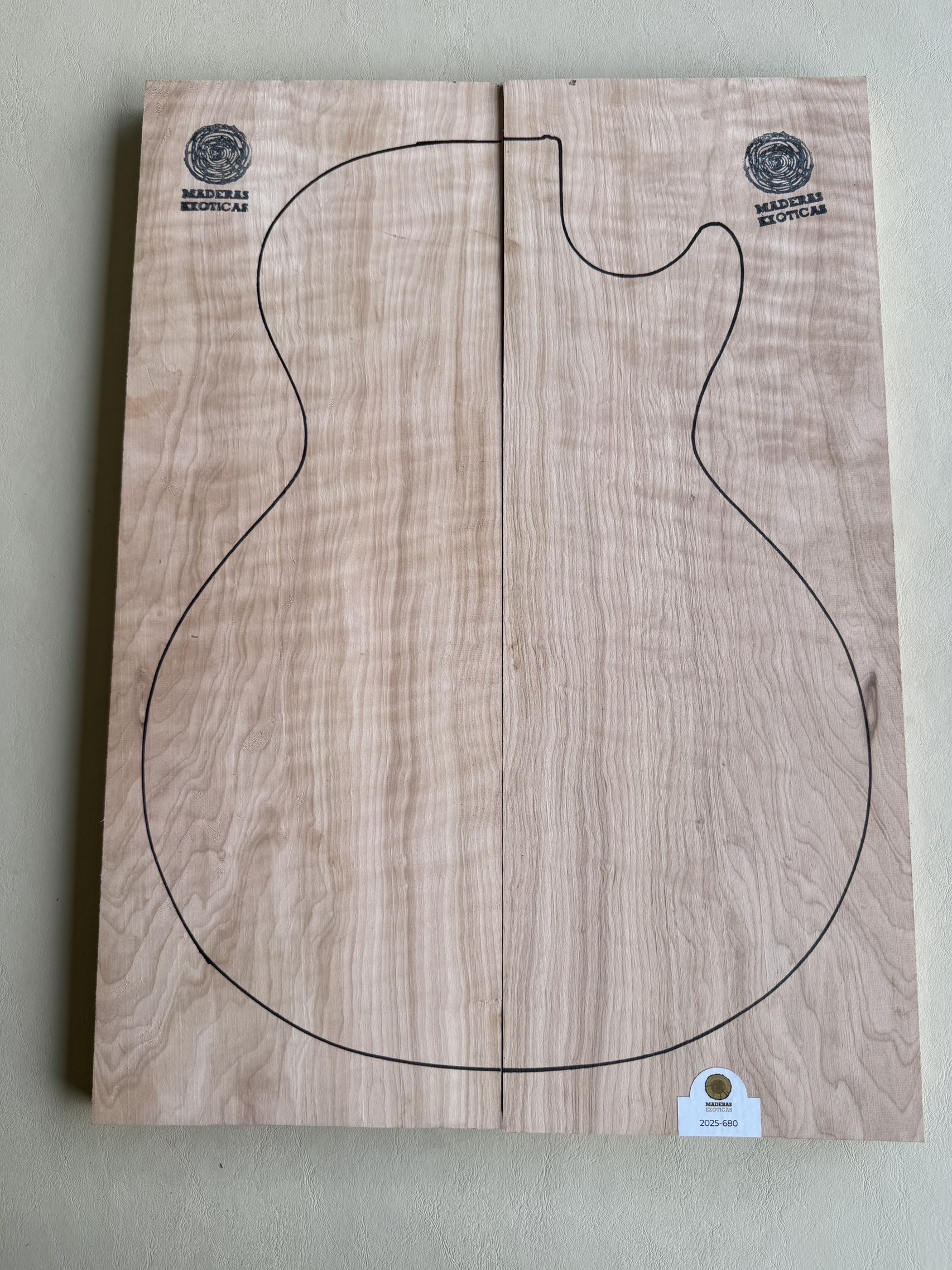 Carved Tops Lenga flameada para guitarra electrica (Nothofagus pumilio) para guitarra eléctrica 🎸. Madera patagónica de origen argentino-chileno, con densidad aprox. 550 kg/m³, ideal por su estabilidad, trabajabilidad y respuesta sonora equilibrada. Aporta un flameado natural único que realza la estética del instrumento.