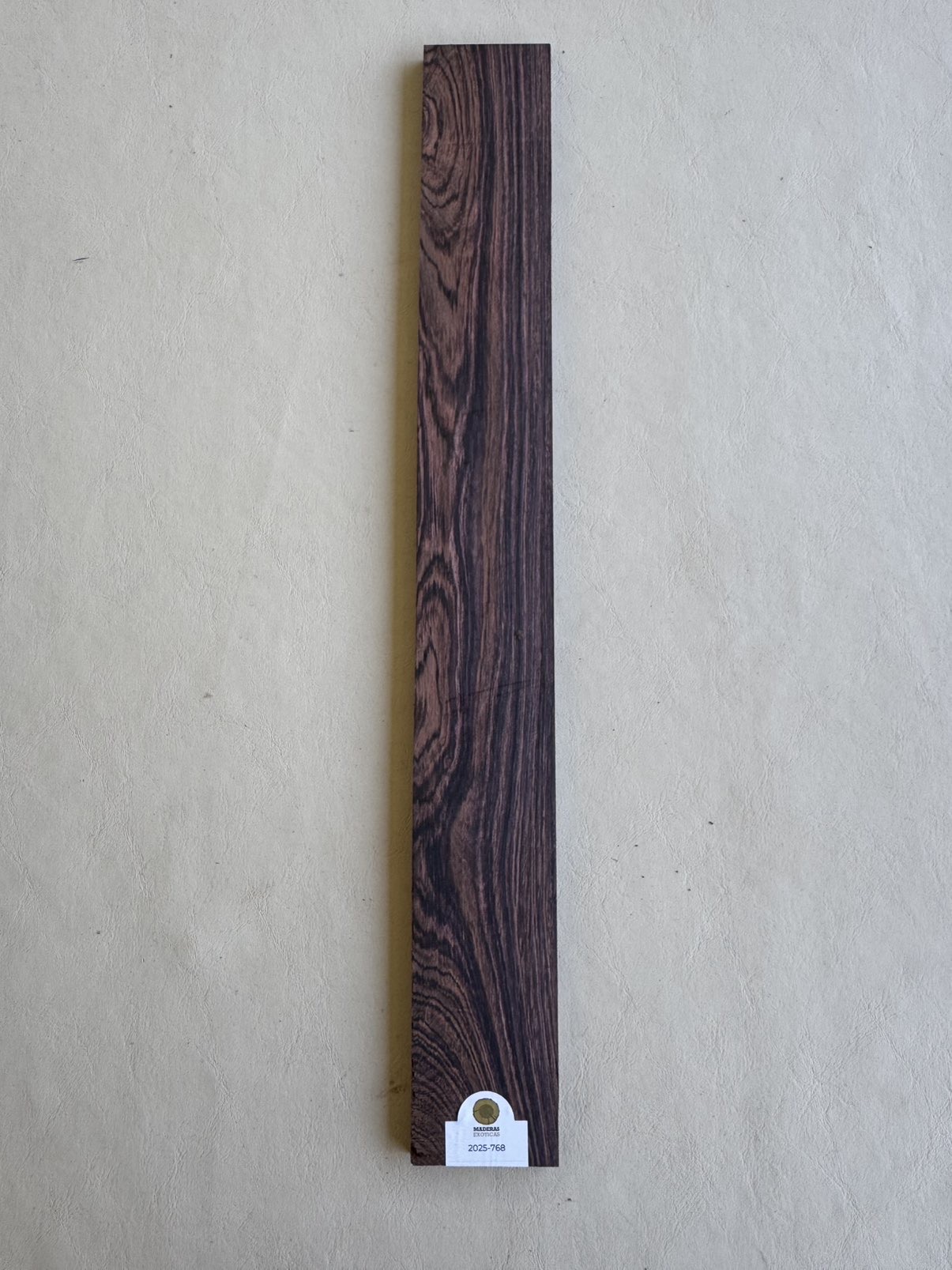 Diapasones de Brazilian Rosewood (Dalbergia nigra), originarios de Brasil. Con una densidad elevada (1.050–1.200 kg/m³), esta madera ofrece calidez tonal, gran durabilidad, estabilidad sobresaliente y una estética elegante con vetas oscuras profundas, ideal para guitarras de alta gama.