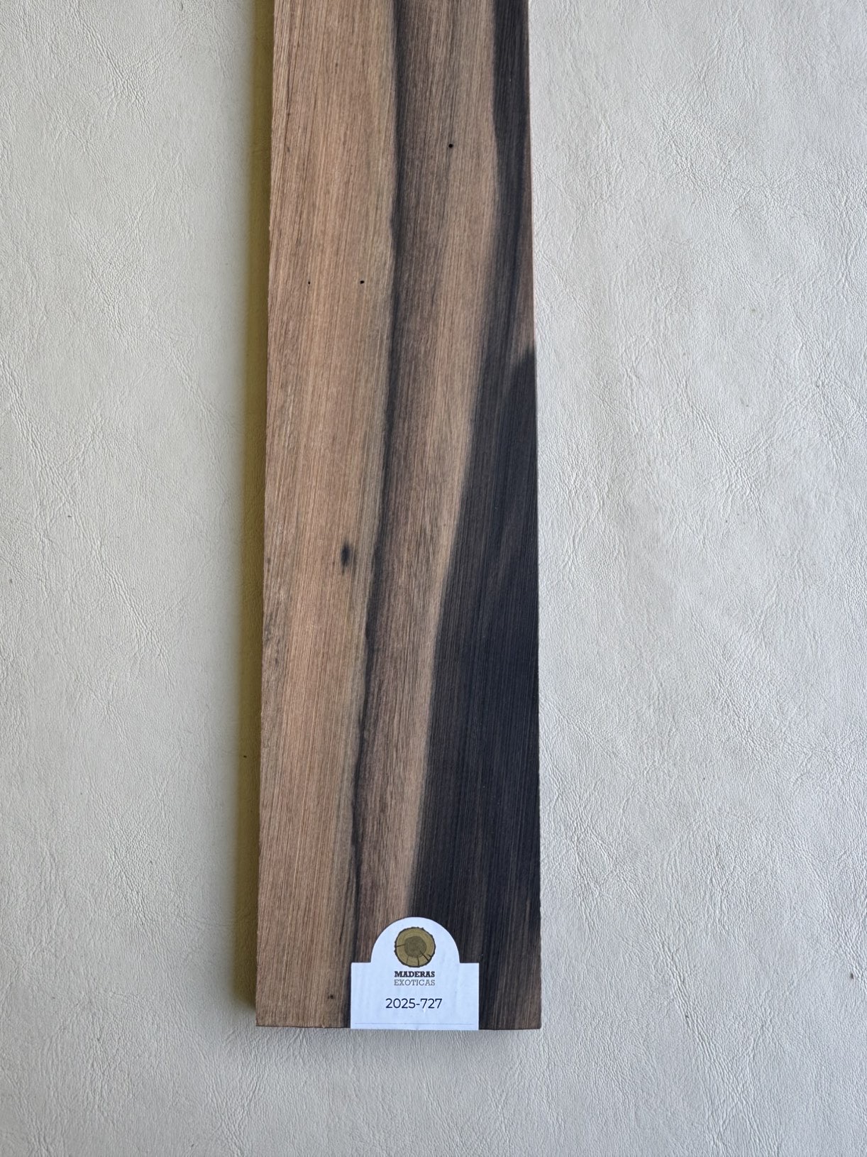 Tastieras de ébano para guitarra – Diospyros crassiflora, origen África, densidad aprox. 950–1100 kg/m³. Una madera extremadamente dura, estable y duradera, ideal para lograr un tacto suave, ataque definido y una estética profesional en cualquier instrumento. Su color negro profundo la convierte en una de las preferidas por luthiers exigentes.