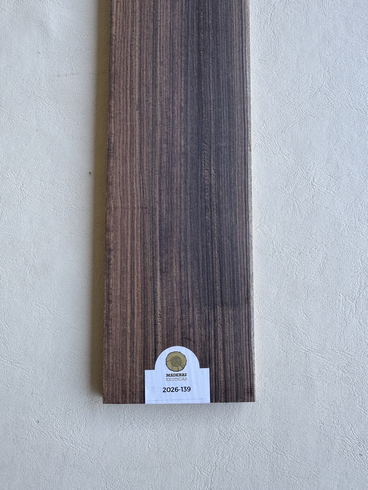 Su belleza natural destaca por vetas irregulares que van del marrón dorado al púrpura oscuro, aportando una estética única a cada instrumento. Excelente para diapasones, fondos, aros y tapas armónicas en guitarras acústicas, clásicas o eléctricas.
