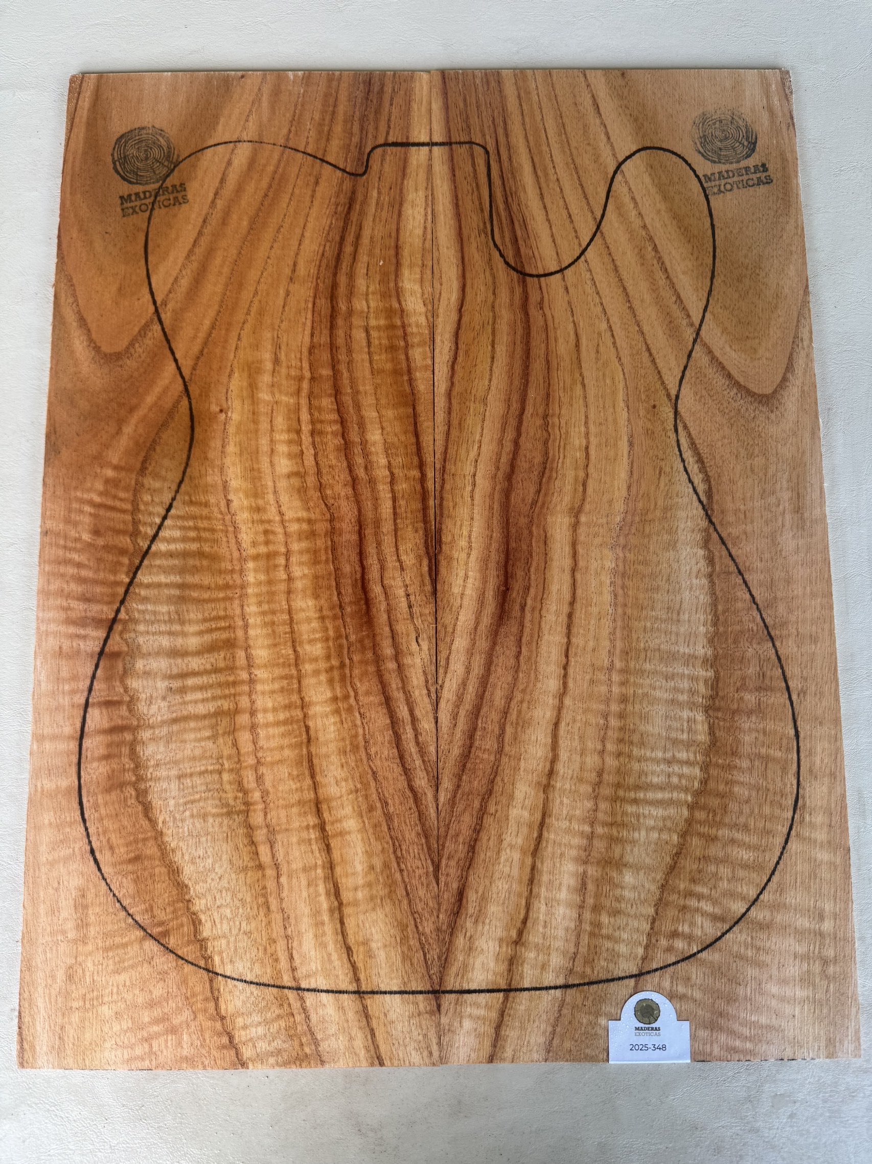 Drop tops de Paraíso flameado (Melia azedarach), una madera nativa del norte argentino con una densidad media de 540-580 kg/m³. Ideal para tops de guitarras eléctricas por su estabilidad, facilidad de trabajo y su espectacular veteado tridimensional que resalta con cualquier acabado. Aporta calidez sonora, estética impactante y un balance perfecto entre peso y rigidez.