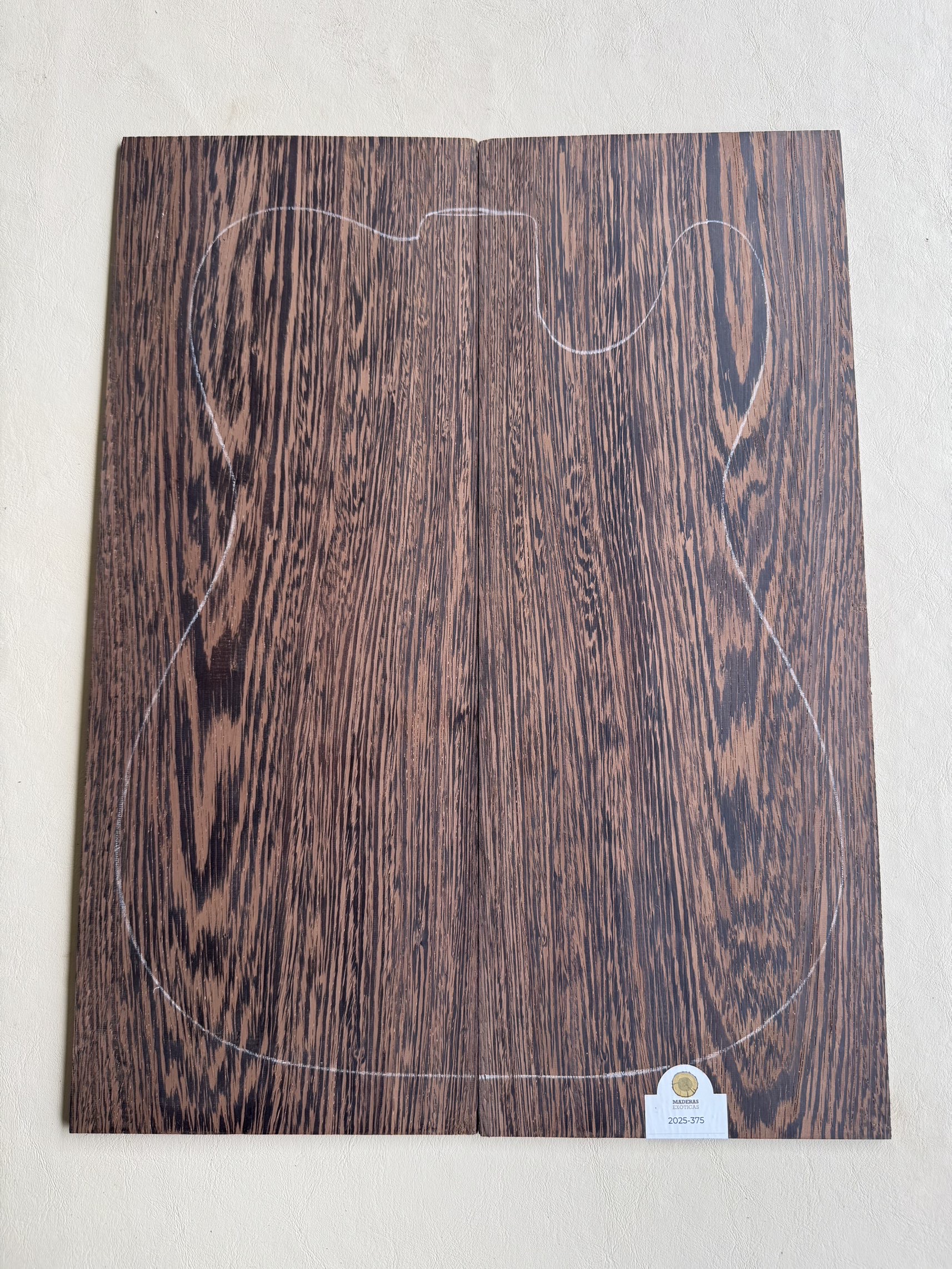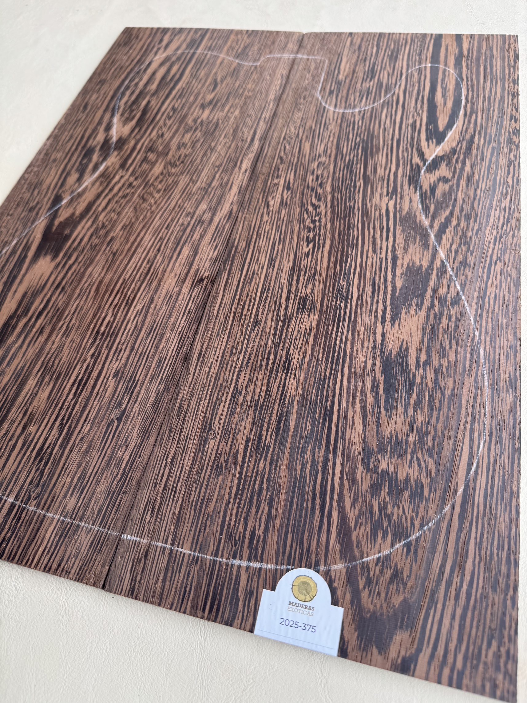 Drop Tops de wengué (Millettia laurentii) para guitarra eléctrica, originario de África Central, con densidad 830-880 kg/m³. Madera dura, estable, resonante y con sustain prolongado, ideal para luthiers exigentes.