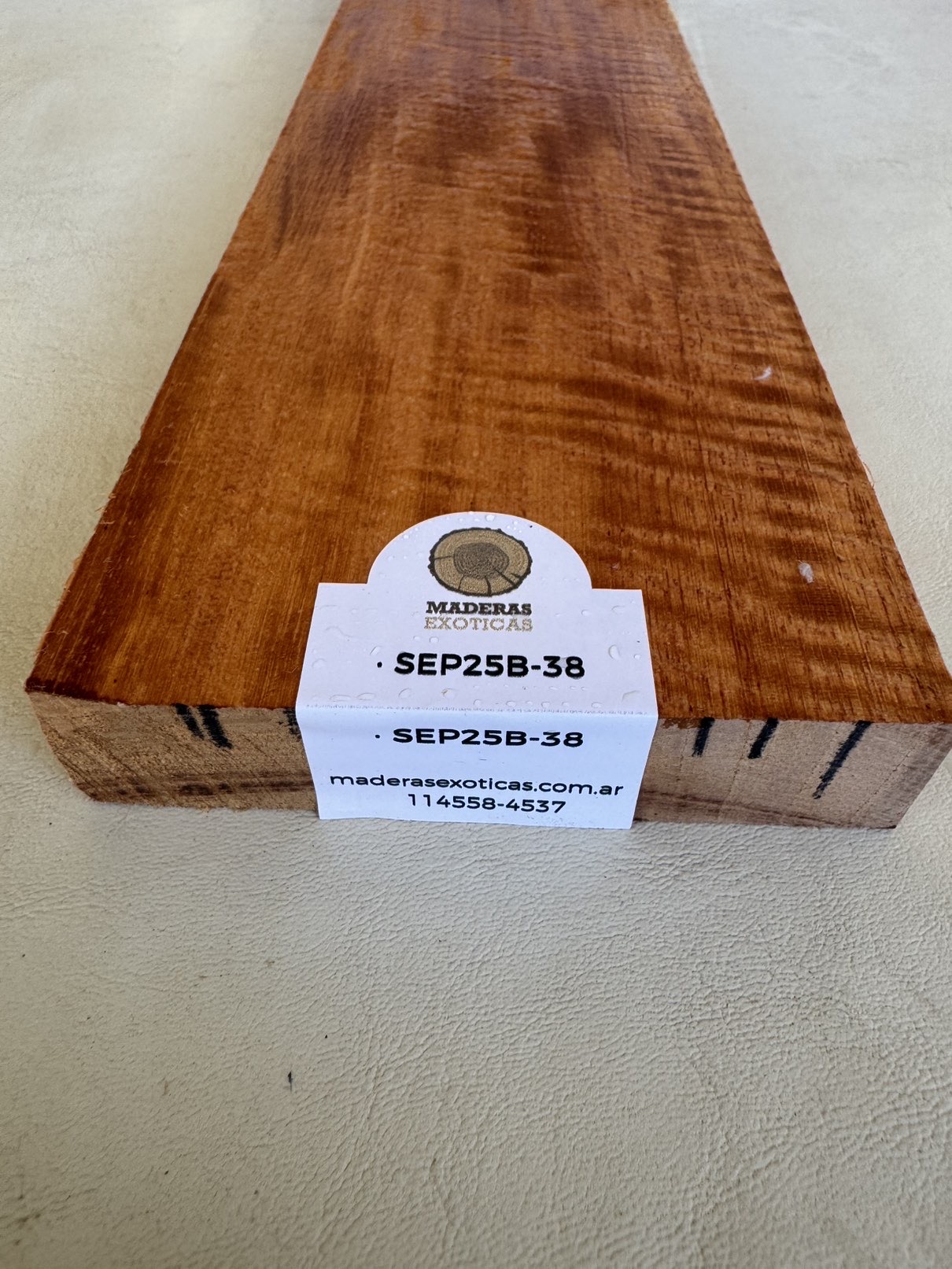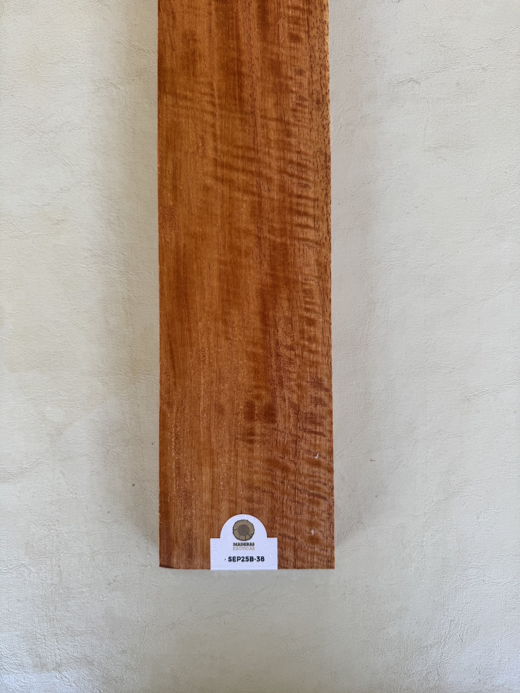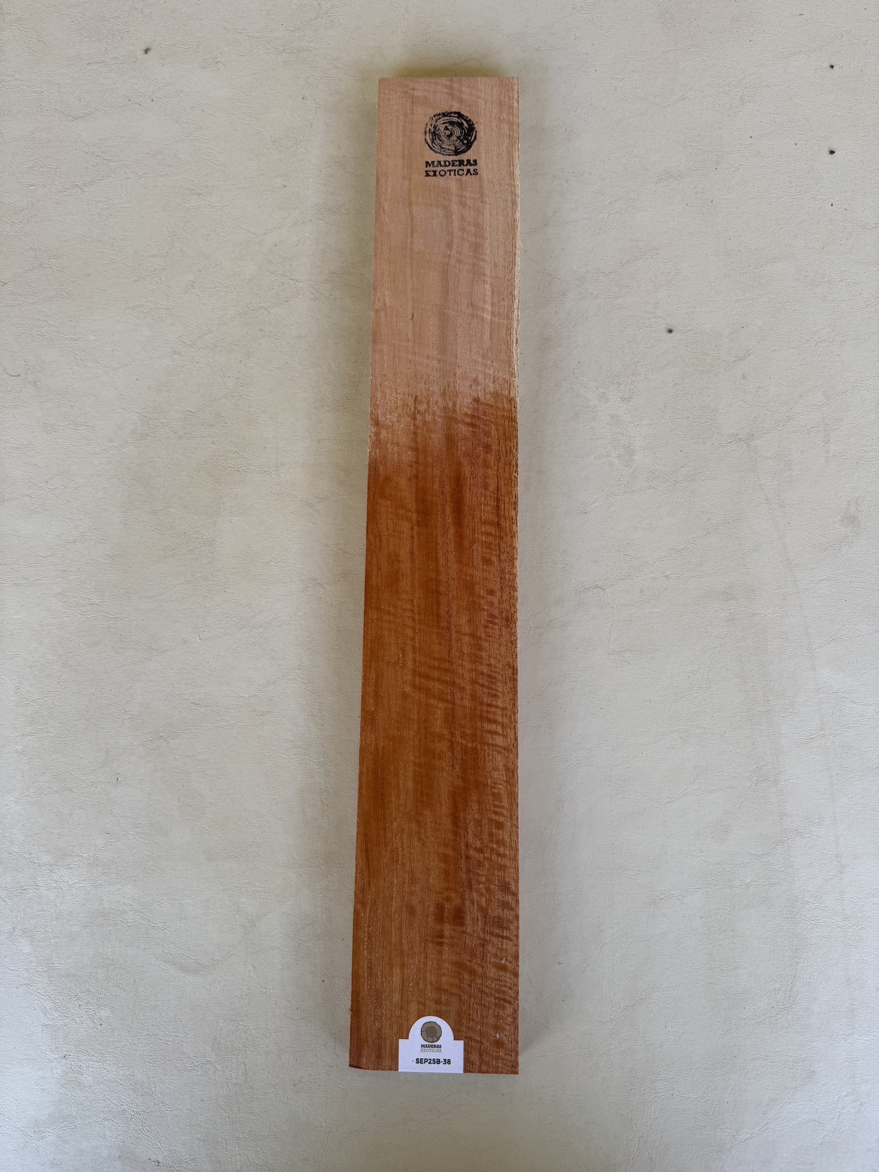 El cedro Misionero (Cedrela fissilis) es una madera ideal para mangos de guitarra clásica, con densidad de 420–520 kg/m³, reconocida por su ligereza, estabilidad y facilidad de trabajo. Su color rojizo claro a marrón suave y vetas rectas o ligeramente flameadas aportan belleza y elegancia al instrumento, mientras que su resonancia cálida y equilibrada realza el sonido. Perfecta para luthiers que buscan calidad, estética y confort en cada guitarra