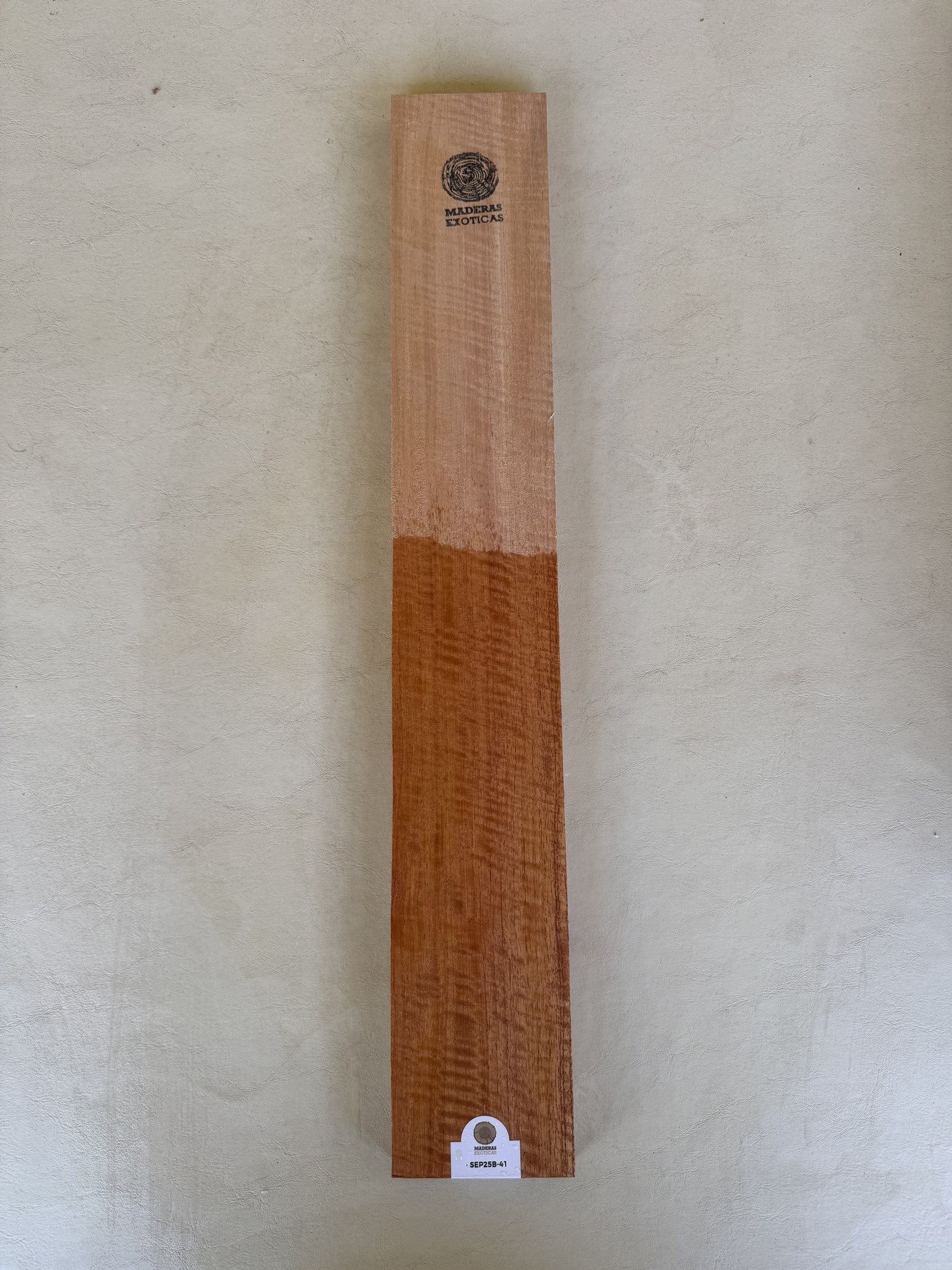 El cedro Misionero (Cedrela fissilis) es una madera ideal para mangos de guitarra clásica, con densidad de 420–520 kg/m³, reconocida por su ligereza, estabilidad y facilidad de trabajo. Su color rojizo claro a marrón suave y vetas rectas o ligeramente flameadas aportan belleza y elegancia al instrumento, mientras que su resonancia cálida y equilibrada realza el sonido. Perfecta para luthiers que buscan calidad, estética y confort en cada guitarra