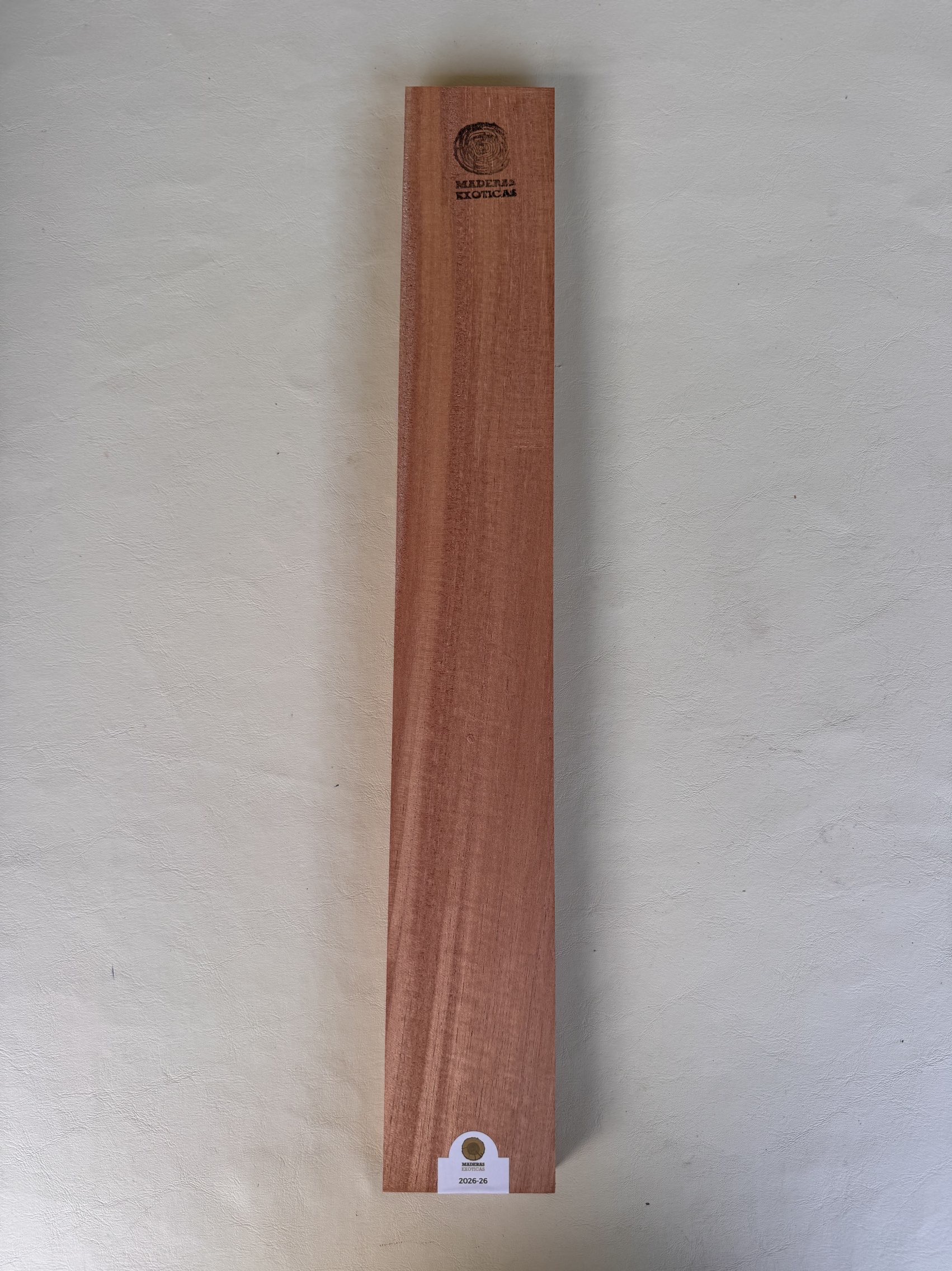 El cedro Misionero (Cedrela fissilis) es una madera ideal para mangos de guitarra clásica, con densidad de 420–520 kg/m³, reconocida por su ligereza, estabilidad y facilidad de trabajo. Su color rojizo claro a marrón suave y vetas rectas o ligeramente flameadas aportan belleza y elegancia al instrumento, mientras que su resonancia cálida y equilibrada realza el sonido. Perfecta para luthiers que buscan calidad, estética y confort en cada guitarra