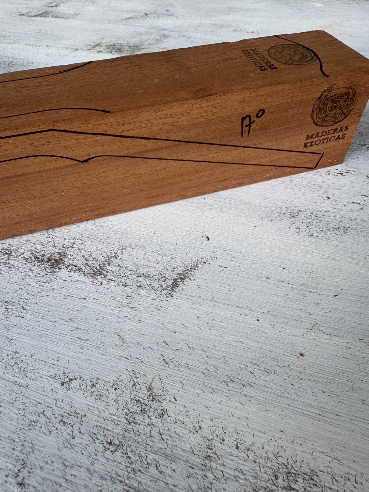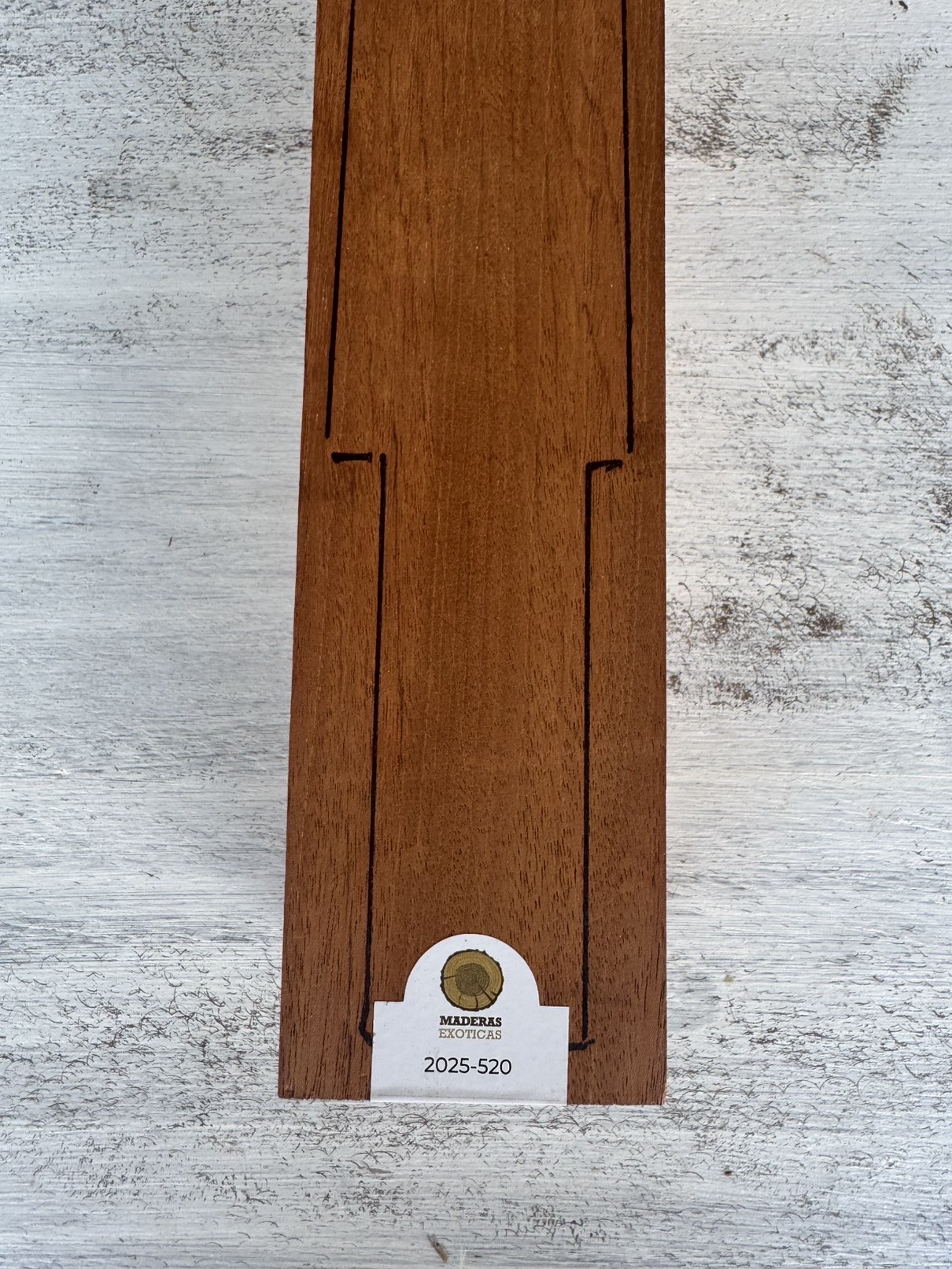 Mango apto Les Paul, en una sola pieza de Mara boliviana misma especie que la Caoba de Honduras (Swietenia macrophylla), utilizada históricamente por Gibson en la construcción de sus guitarras.