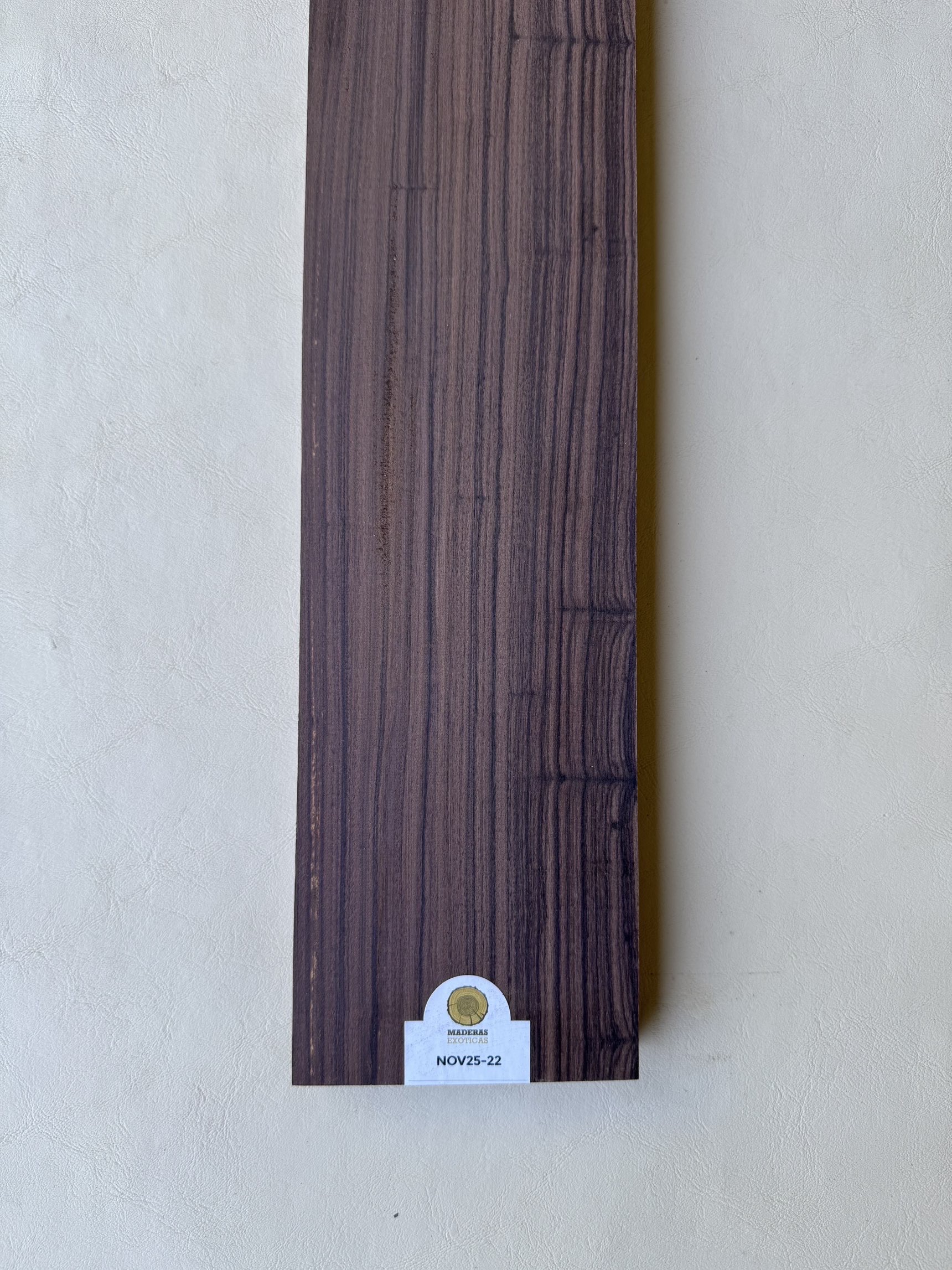 Mangos de Pau Ferro (Machaerium scleroxylon) para bajo eléctrico. Originarios de Sudamérica, poseen alta densidad (aprox. 1.050 kg/m³), gran estabilidad, resistencia al desgaste, excelente respuesta tonal y un acabado liso, ideales para instrumentos premium.