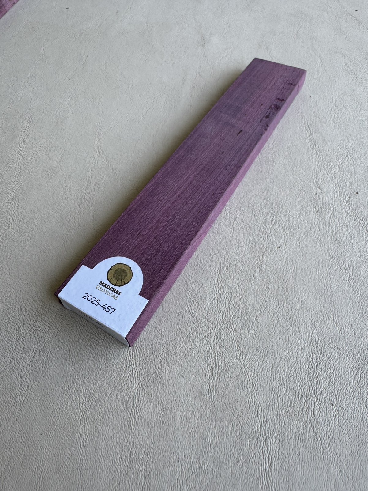 Puentes de Purple Heart (Peltogyne spp.), madera originaria de Centro y Sudamérica, con alta densidad (~850 kg/m³) y excelente estabilidad. Ideal para puentes de guitarra por su dureza, resistencia al desgaste y gran transmisión sonora, aportando sustain definido y ataque claro. Su característico color púrpura, que evoluciona a tonos violáceos profundos con el tiempo, suma un detalle estético distintivo.