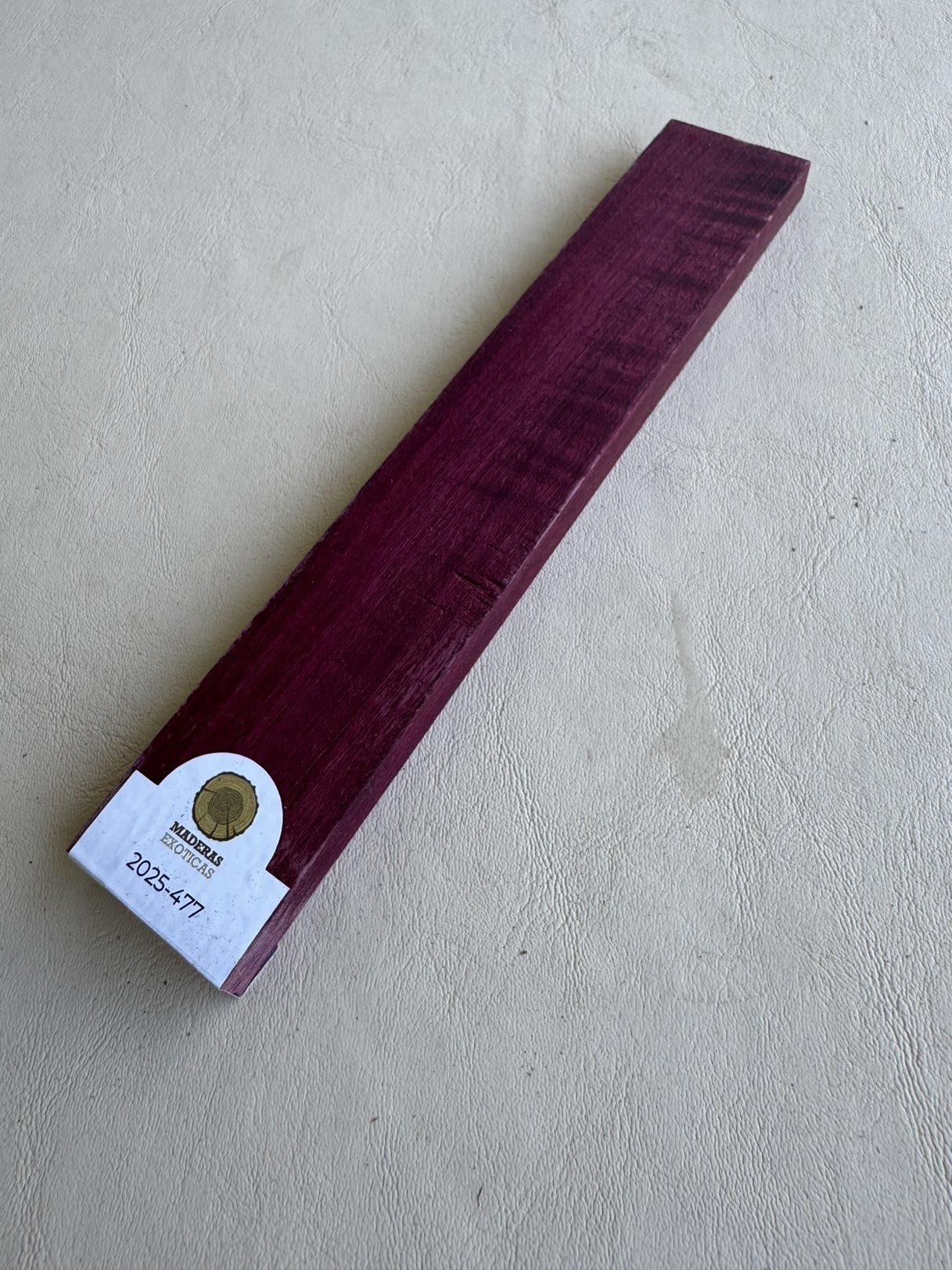 Puentes de Purple Heart (Peltogyne spp.), madera originaria de Centro y Sudamérica, con alta densidad (~850 kg/m³) y excelente estabilidad. Ideal para puentes de guitarra por su dureza, resistencia al desgaste y gran transmisión sonora, aportando sustain definido y ataque claro. Su característico color púrpura, que evoluciona a tonos violáceos profundos con el tiempo, suma un detalle estético distintivo.