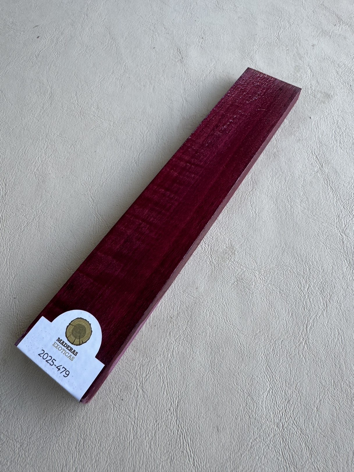 Puentes de Purple Heart (Peltogyne spp.), madera originaria de Centro y Sudamérica, con alta densidad (~850 kg/m³) y excelente estabilidad. Ideal para puentes de guitarra por su dureza, resistencia al desgaste y gran transmisión sonora, aportando sustain definido y ataque claro. Su característico color púrpura, que evoluciona a tonos violáceos profundos con el tiempo, suma un detalle estético distintivo.