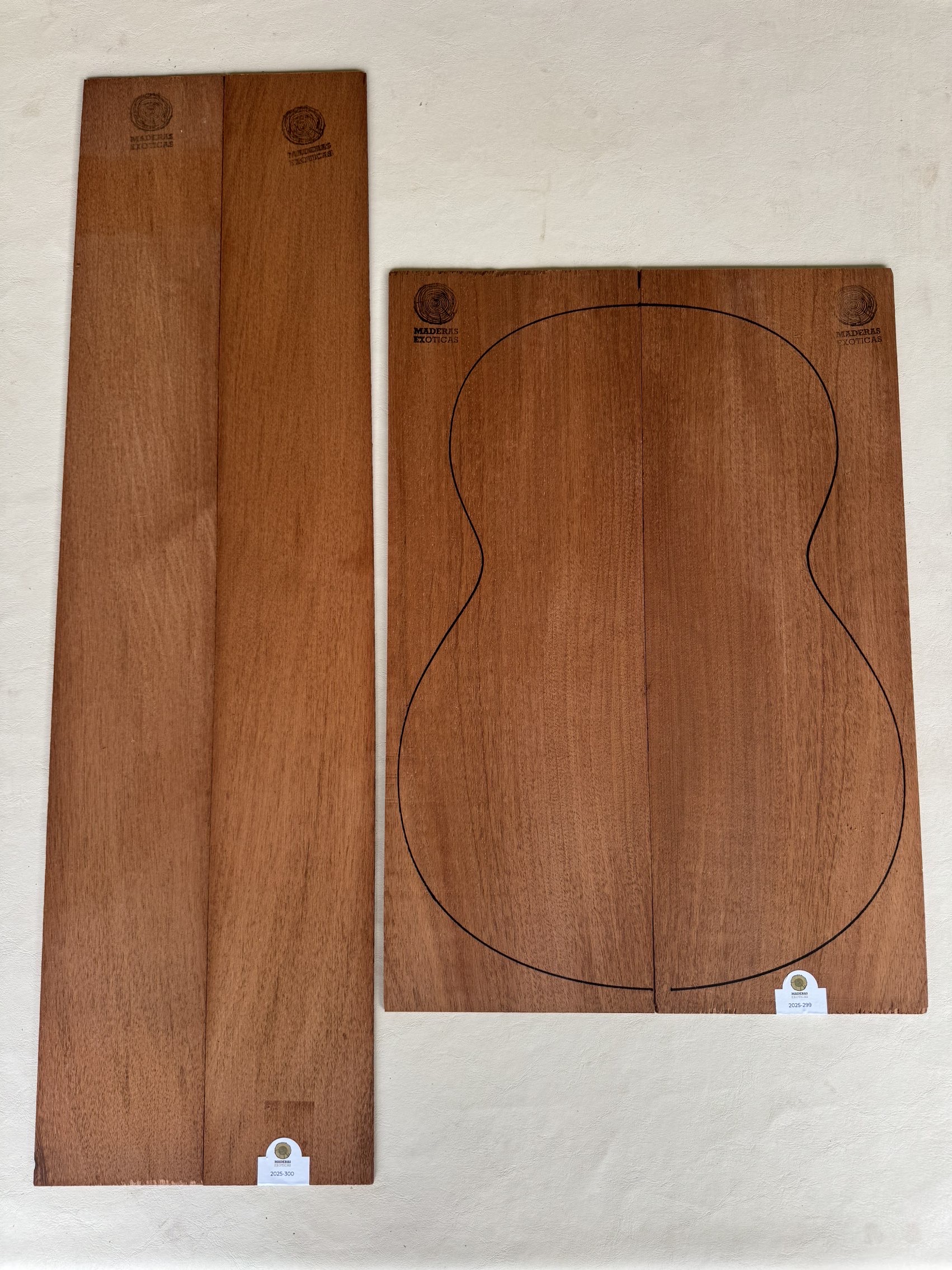 Exclusivos sets de fondo y aros para guitarra clásica en Mara Boliviana (Swietenia macrophylla), también conocida como caoba sudamericana.