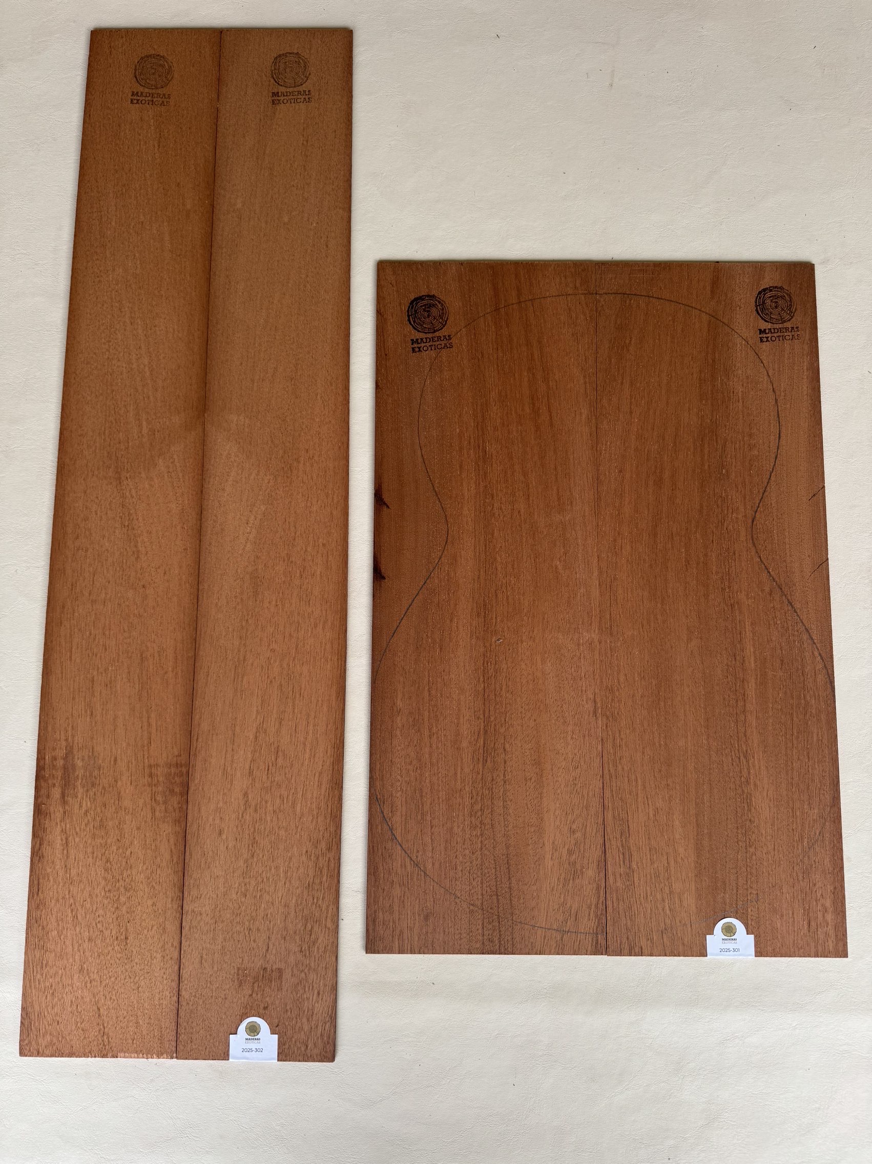 Exclusivos sets de fondo y aros para guitarra clásica en Mara Boliviana (Swietenia macrophylla), también conocida como caoba sudamericana.