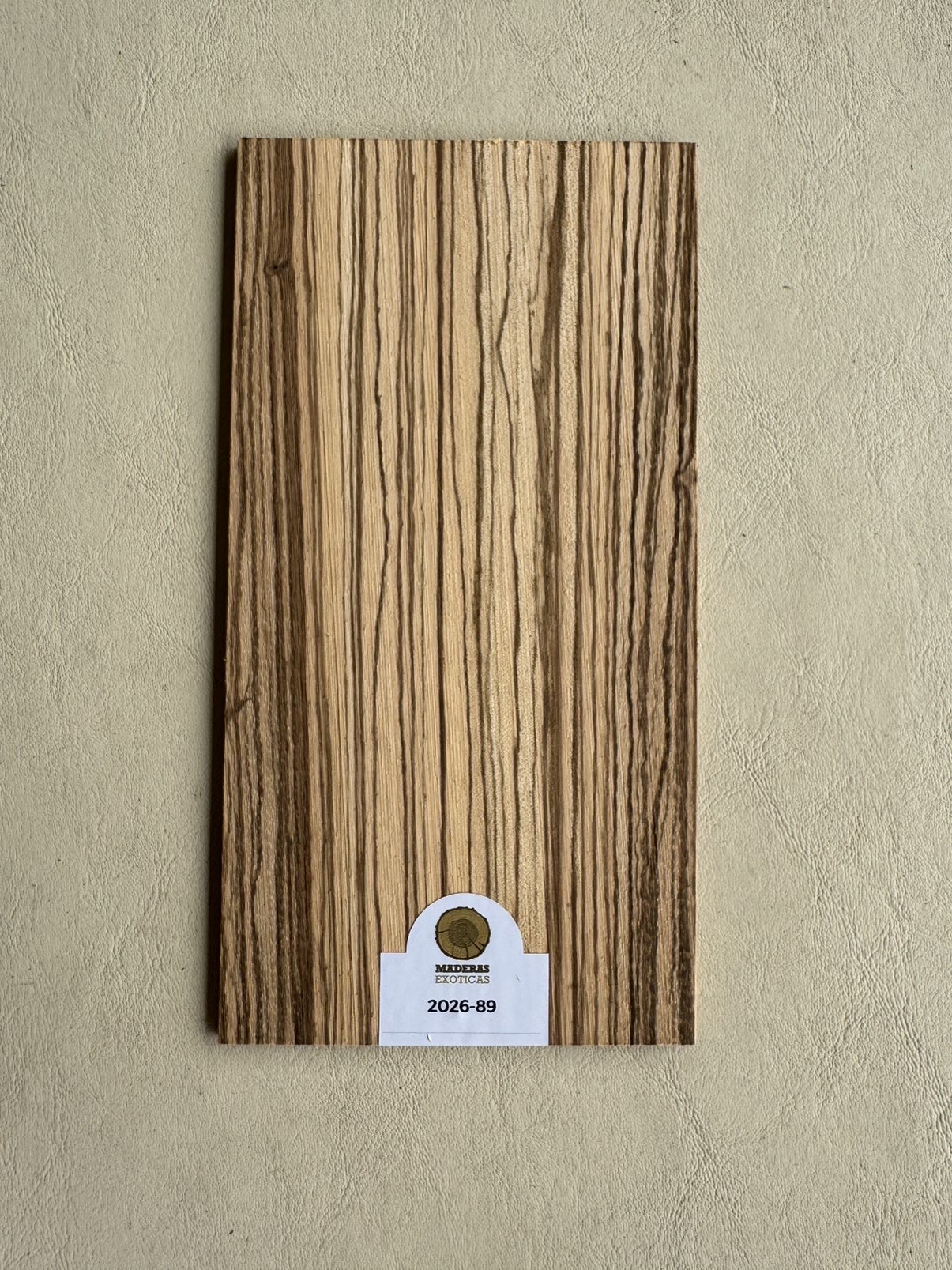 La madera del Zebrano es una madera densa, semidura. Tiene buenas propiedades mecánicas y gran resistencia a los impactos. Originaria de Camerún y Gabón, es característica por su color contrastado y llamativas numerosas bandas negras o pardooscuras.