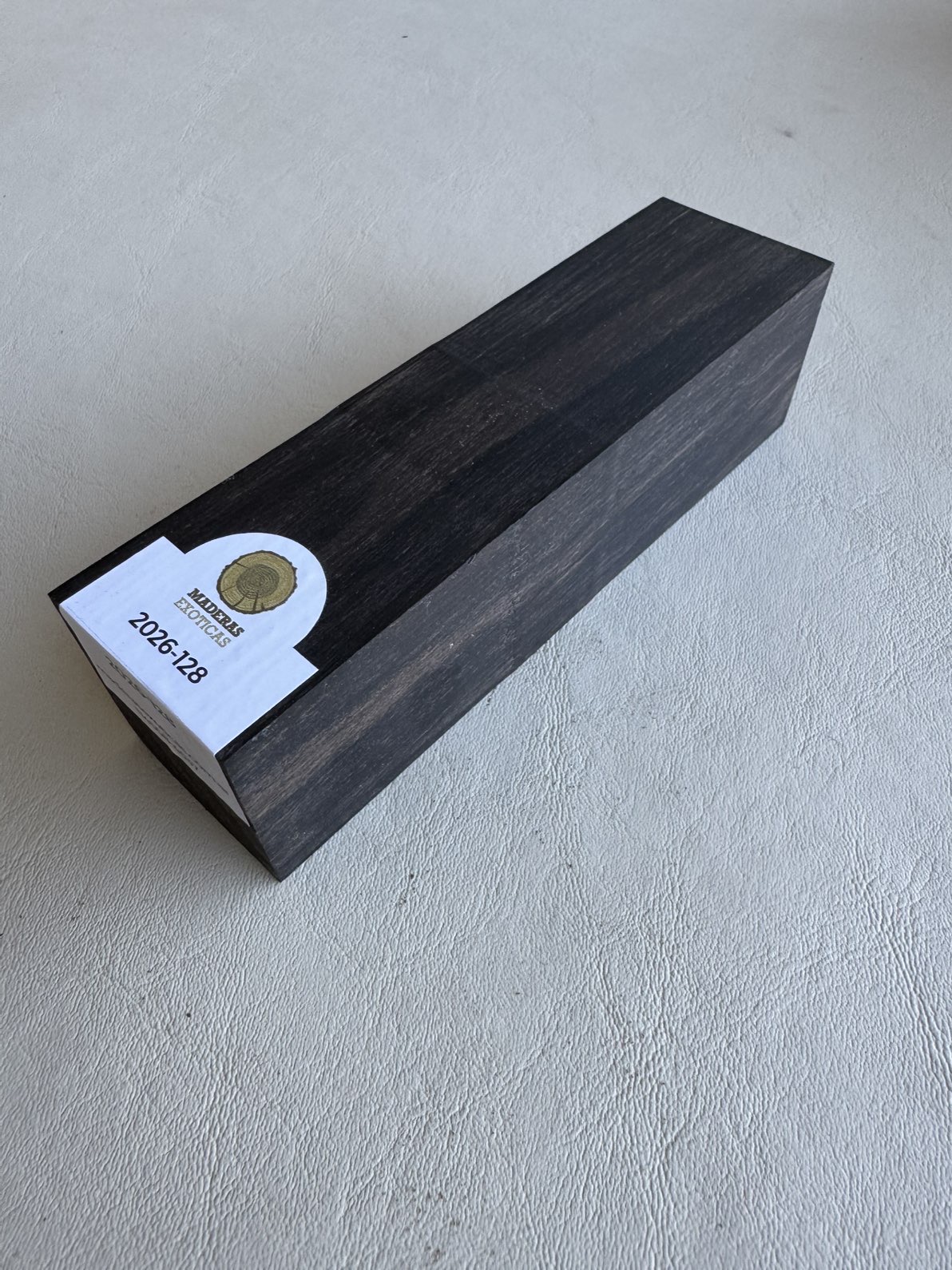 Cachas de ébano Gabón (Diospyros crassiflora), una de las maderas más exclusivas y deseadas del mundo para cuchillería de alta gama. Originaria del África ecuatorial, esta especie presenta una densidad excepcional, cercana a los 1000–1100 kg/m³, y una dureza extrema que garantiza durabilidad, resistencia al desgaste y un acabado perfectamente pulido. Su color negro profundo con vetas ocasionales la convierte en sinónimo de elegancia y distinción.