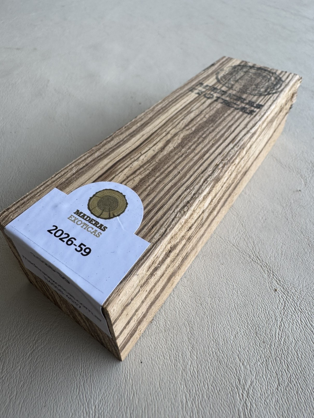 La madera del zebrano es una madera densa, semidura. Tiene buenas propiedades mecánicas y gran resistencia a los impactos. Originaria de Camerún y Gabón, es característica por su color pajizo y numerosas bandas negras o pardooscuras.