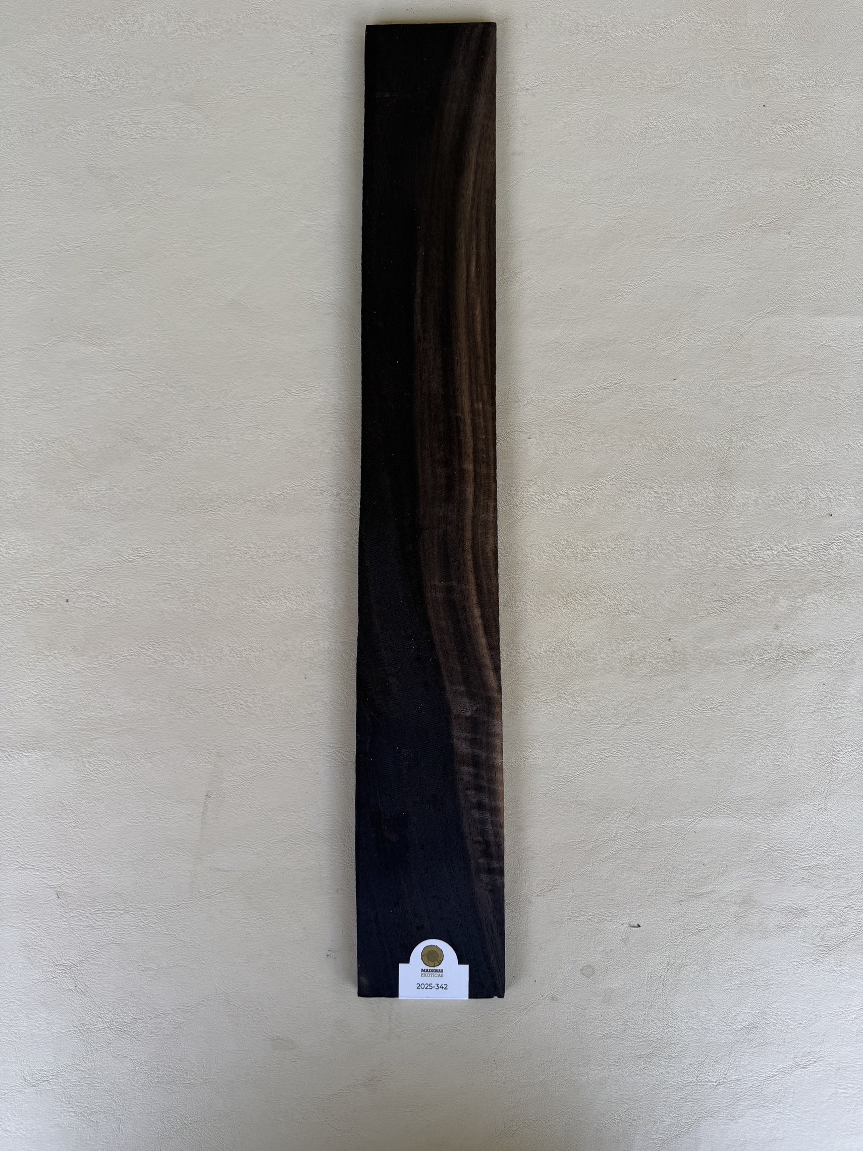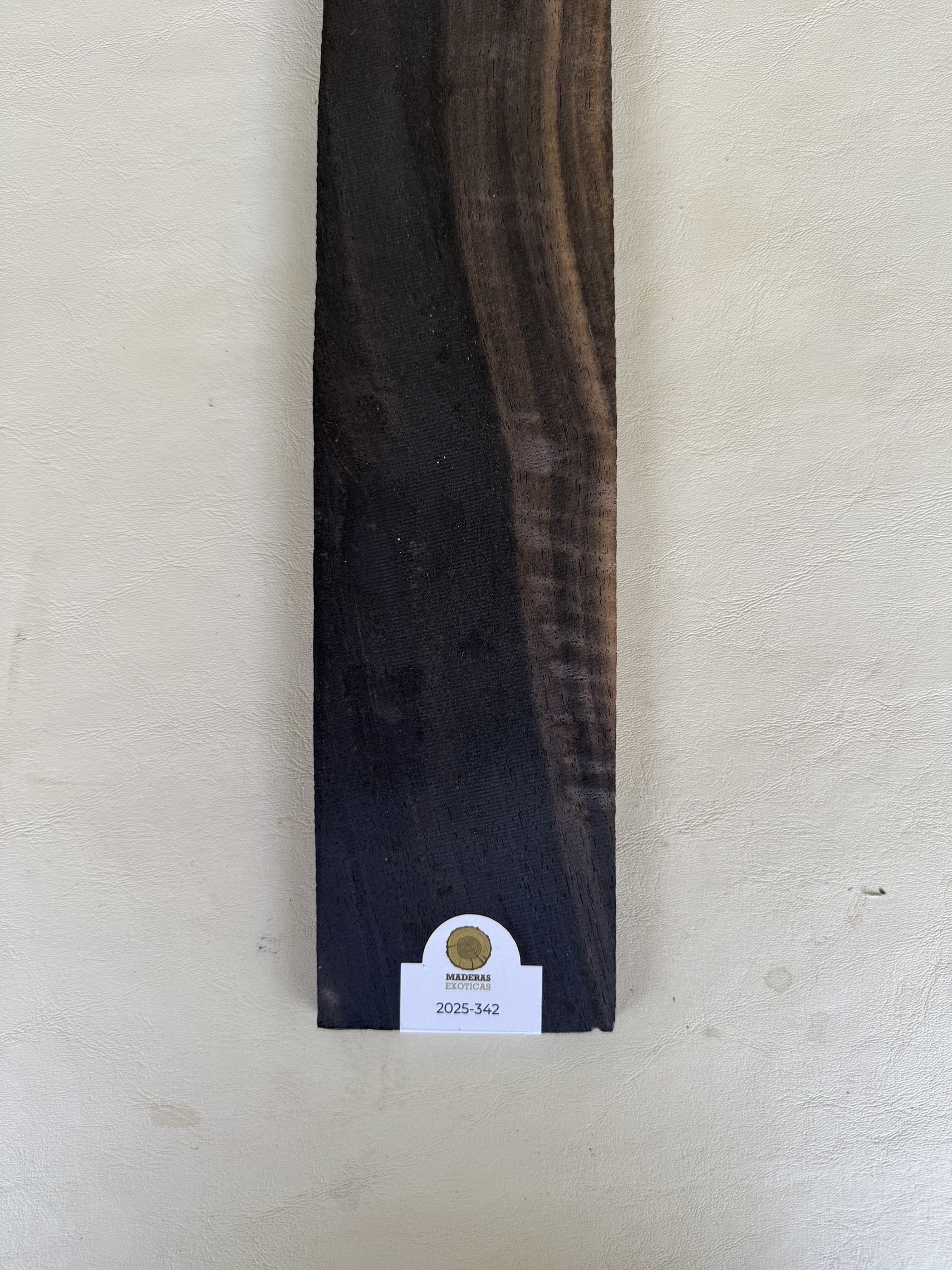 Tastieras de ébano para guitarra – Diospyros crassiflora, origen África, densidad aprox. 950–1100 kg/m³. Una madera extremadamente dura, estable y duradera, ideal para lograr un tacto suave, ataque definido y una estética profesional en cualquier instrumento. Su color negro profundo la convierte en una de las preferidas por luthiers exigentes.